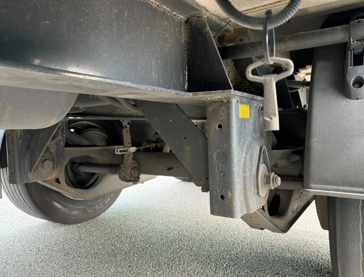 Vorderachse: Reifenmaß: 385/55 R22.5; Max. Achslast: 8000 kg; Gelenkt; Reifen Profil links: 30%; Reifen Profil rechts: 30%; Federung: Parabelfederung