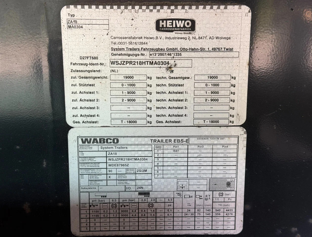 Hinterachse 2: Reifenmaß: 385/55 R22.5; Liftachse; Max. Achslast: 7500 kg; Gelenkt; Reifen Profil links: 30%; Reifen Profil rechts: 30%; Federung: Luftfederung