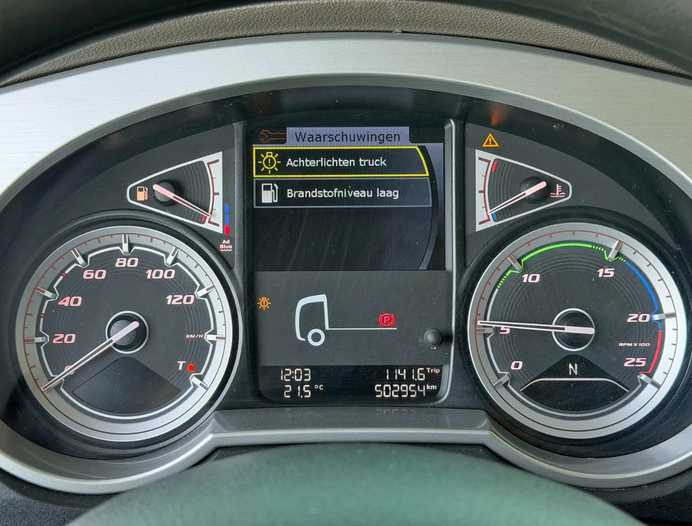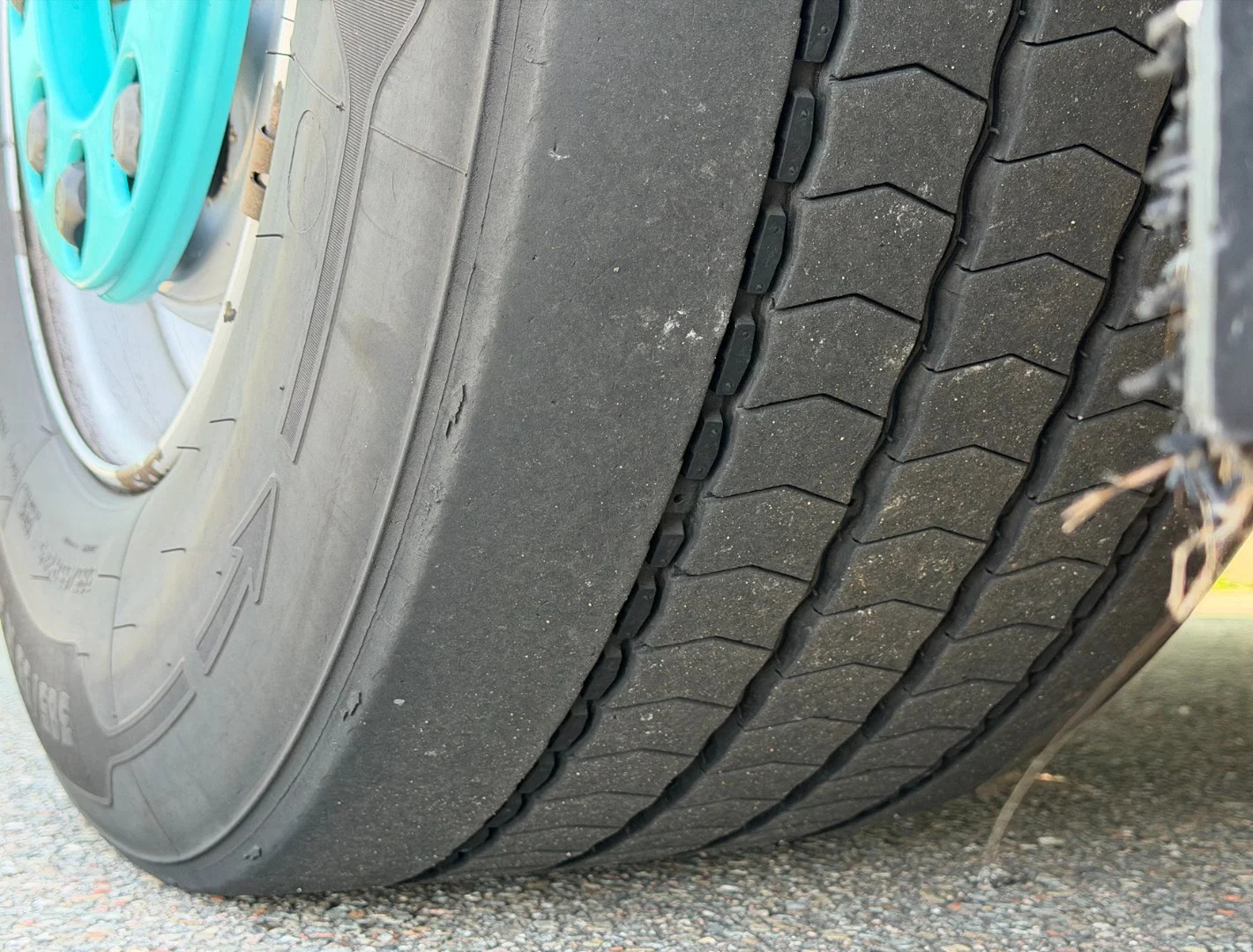 Rear axle: Tyre size: 315/70 R22.5; Double wheels; Max. axle load: 11500 kg; Tyre profile left inner: 40%; Tyre profile left outer: 40%; Tyre profile right outer: 40%; Tyre profile right outer: 40%; Reduction: single reduction
