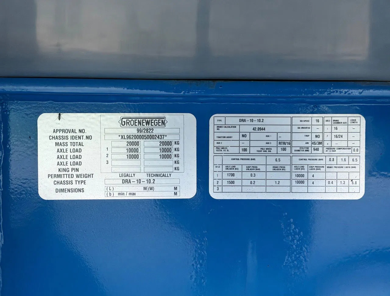 Make and type chassis: Groenewegen DRA-10-10-2