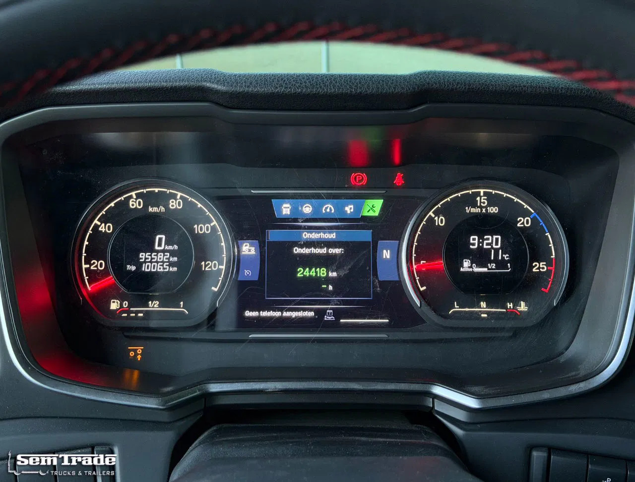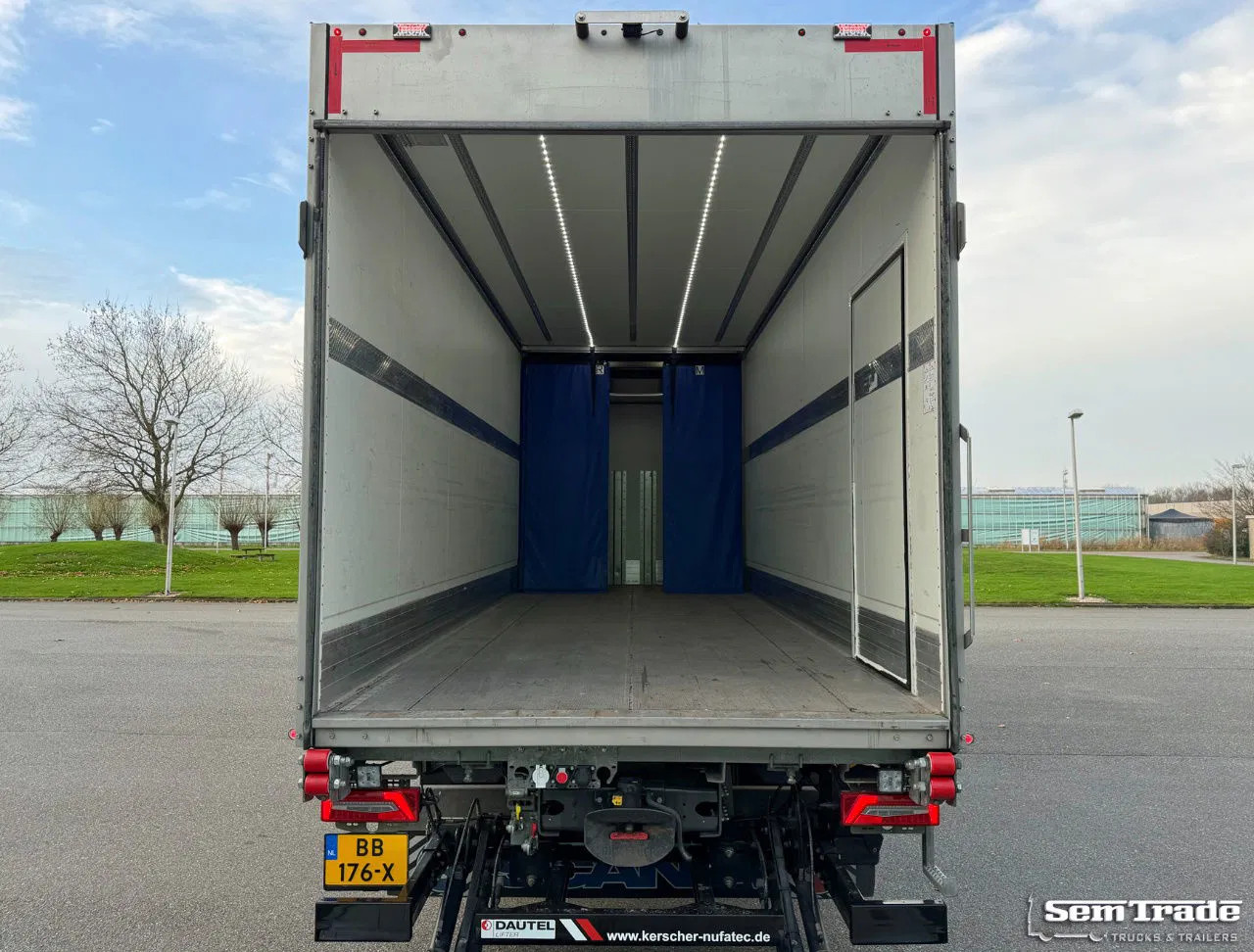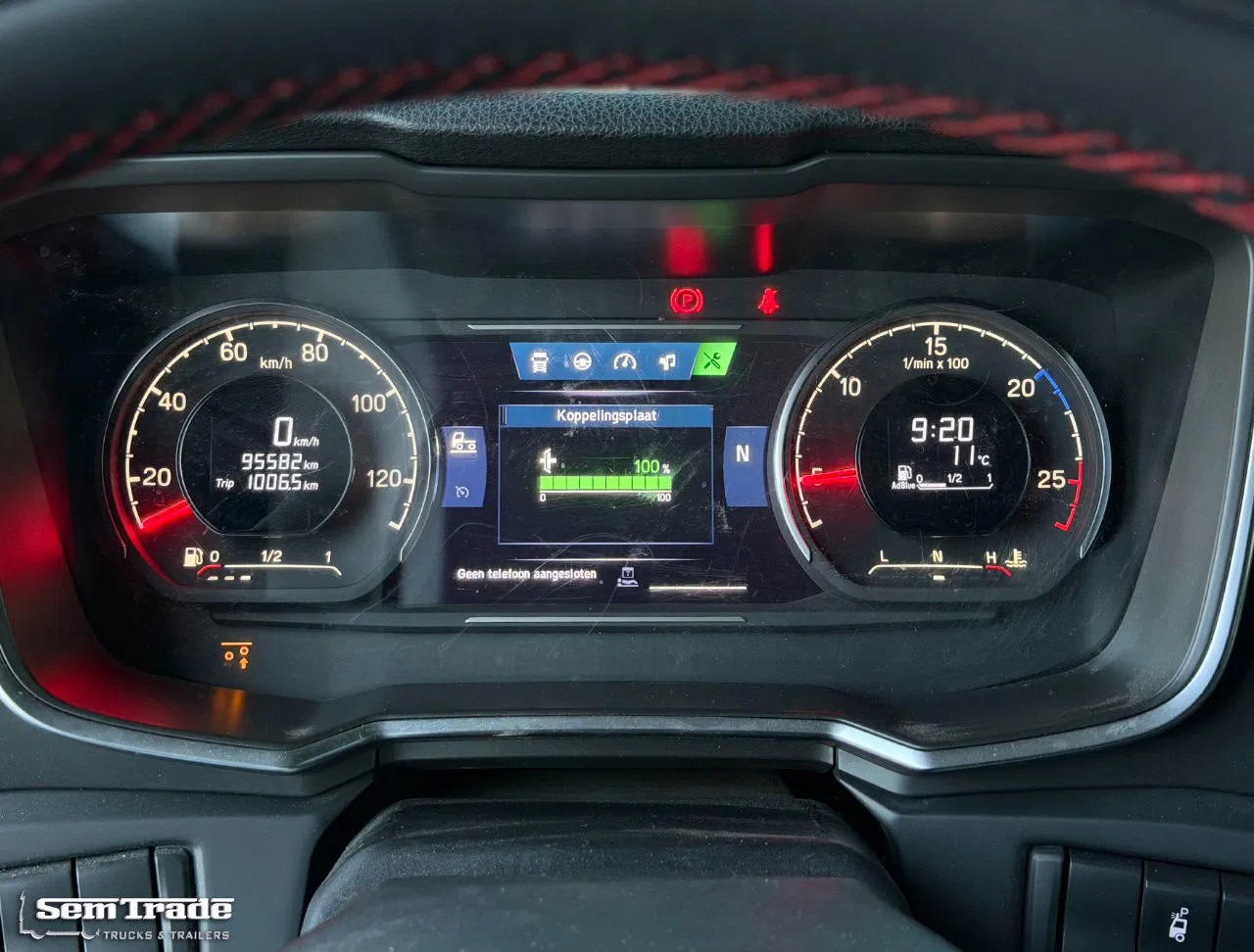 Extra's: RETARDER, Automatic transmission, Fully air suspended, 3rd axle is steered and liftable, 1 bed, 2x leather seats, Double windows, Thermo King TX 1000 Refrigeration, Total working hours in frigo are 827 hours, Temperatures controlled between -30 and +30 degrees celsuis, 615 liter Diesel tank, Fully isolated box build in 2024, Mobile thermo wall, aluminium floor, 2.000 kg Dautel taillift, Trailer coupling, Truck has had damage: Cabin is replaced, completely rebuild by Van der Heijden Truckstyling, Complete repainted, New Alcoa DuraBright wheels, new Bridgestone tires all around, Technically and optically as good as new.