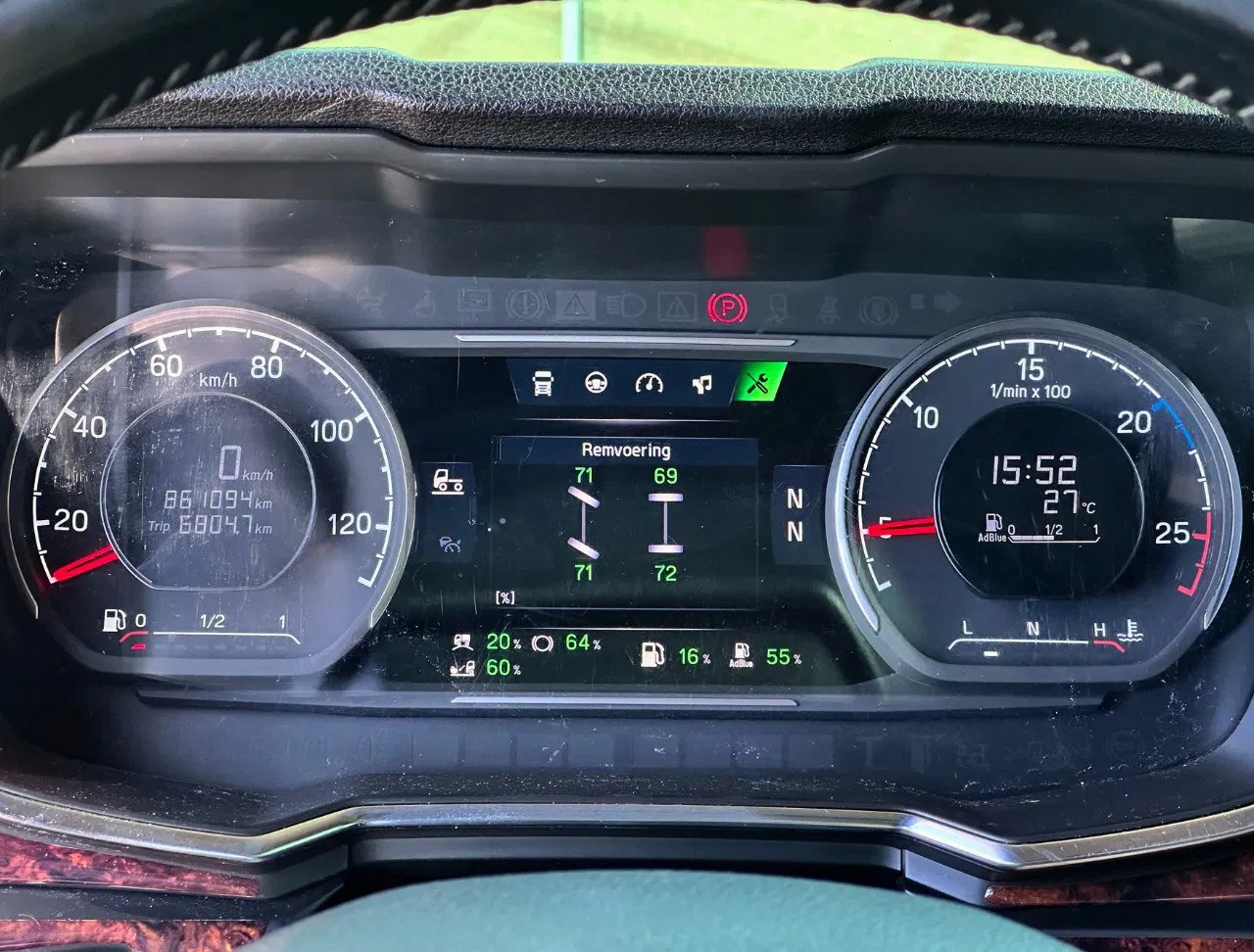Front axle: Tyre size: 385/65 R22.5; Steering; Make axles: Continental R; Tyre profile left: 40%; Tyre profile right: 40%