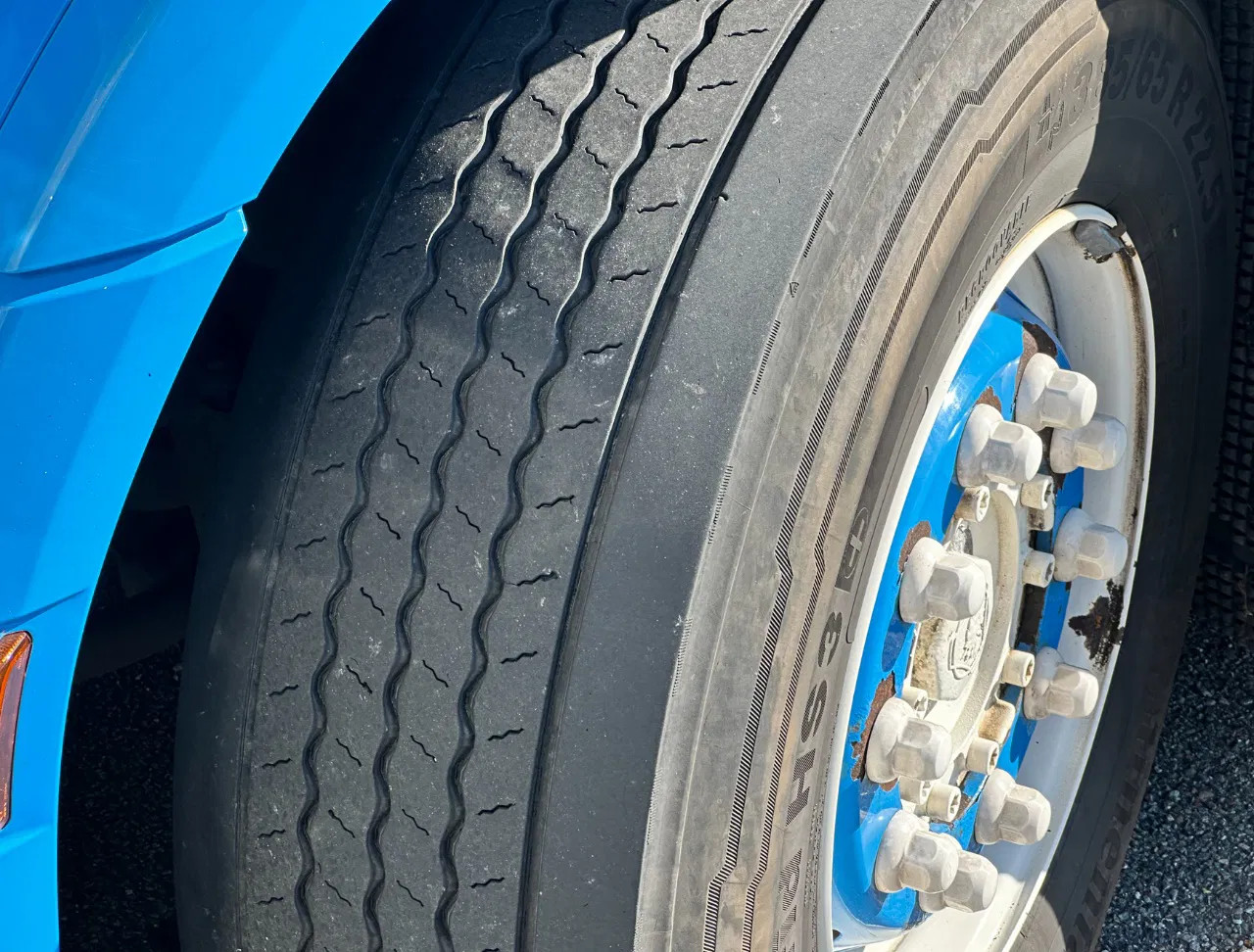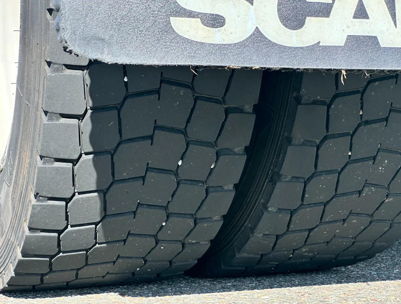 Rear axle: Tyre size: 315/70 R22.5; Double wheels; Make axles: Michelin R; Tyre profile left inner: 40%; Tyre profile left outer: 40%; Tyre profile right outer: 40%; Tyre profile right outer: 40%; Reduction: single reduction