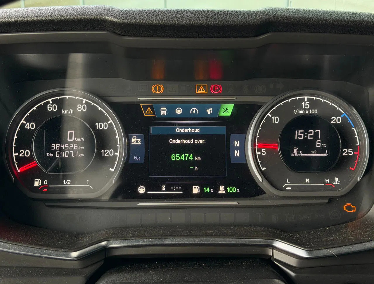 Rear axle: Tyre size: 315/70 R22.5; Double wheels; Differential lock; Alloy wheels; Max. axle load: 11500 kg; Tyre profile left inner: 30%; Tyre profile left outer: 30%; Tyre profile right outer: 30%; Tyre profile right outer: 30%; Reduction: single reduction; Suspension: air suspension