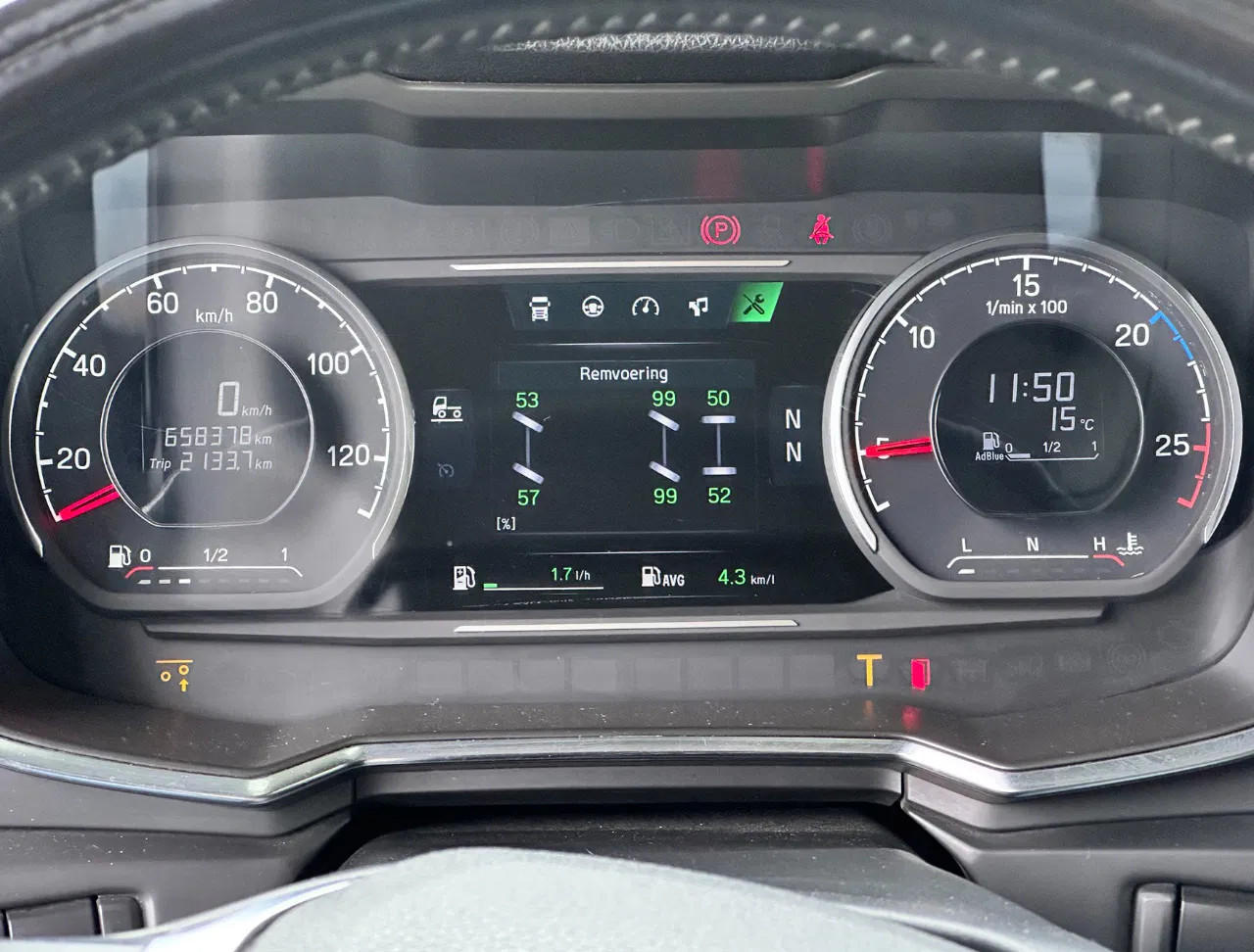 Rear axle 2: Tyre size: 315/70 R22.5; Double wheels; Differential lock; Max. axle load: 11500 kg; Tyre profile left inner: 30%; Tyre profile left outer: 30%; Tyre profile right outer: 30%; Tyre profile right outer: 30%; Reduction: single reduction