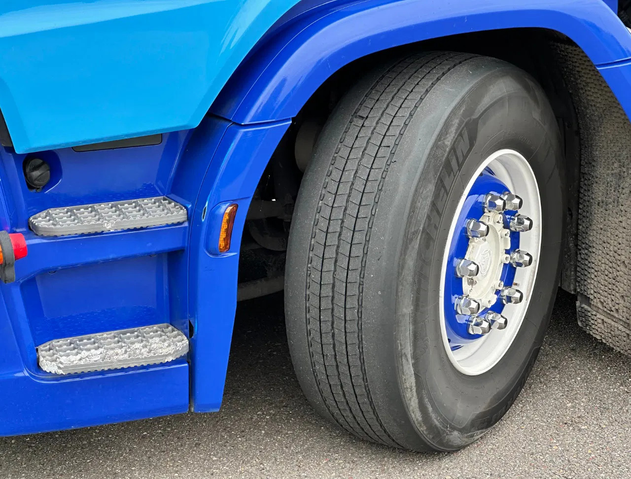 Front axle: Tyre size: 385/65 R22.5; Max. axle load: 8000 kg; Steering; Tyre profile left: 30%; Tyre profile right: 30%
