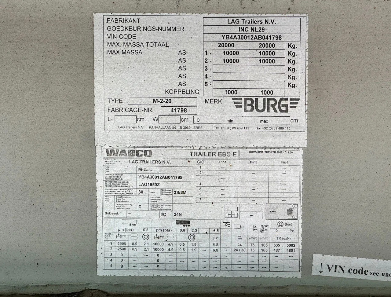 | Max weight | 20000 kg |