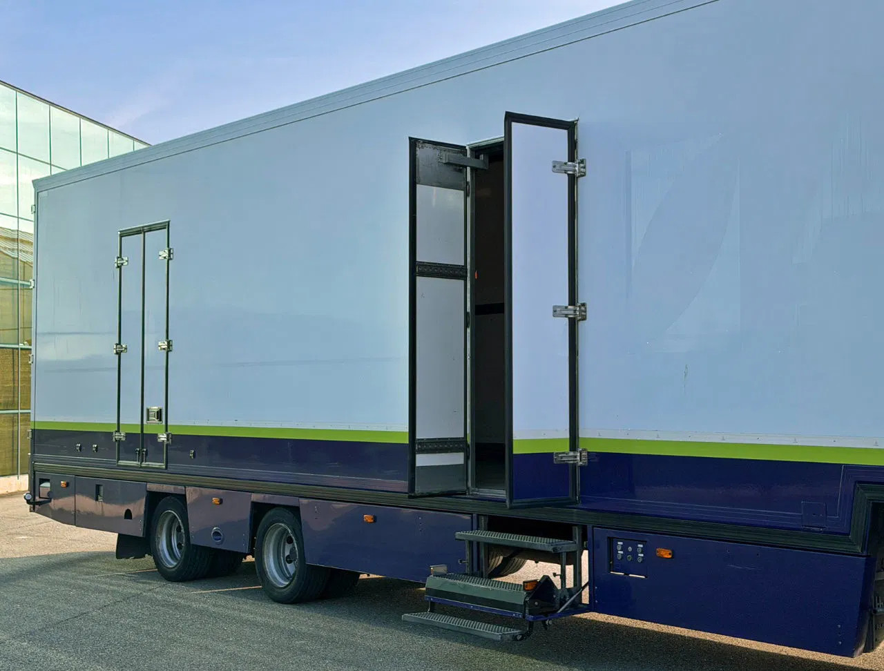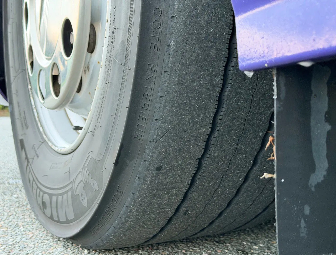 Eje trasero: Tamaño del neumático: 315/70 R22.5; Ruedas dobles; Carga máxima del eje: 11500 kg; Dibujo del neumático izquierda interior: 70%; Dibujo del neumático izquierda exterior: 70%; Dibujo del neumático derecha exterior: 70%; Dibujo del neumático derecha exterior: 70%; Reducción: reducción sencilla