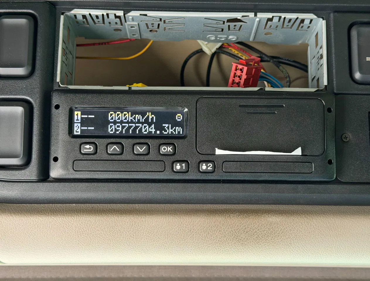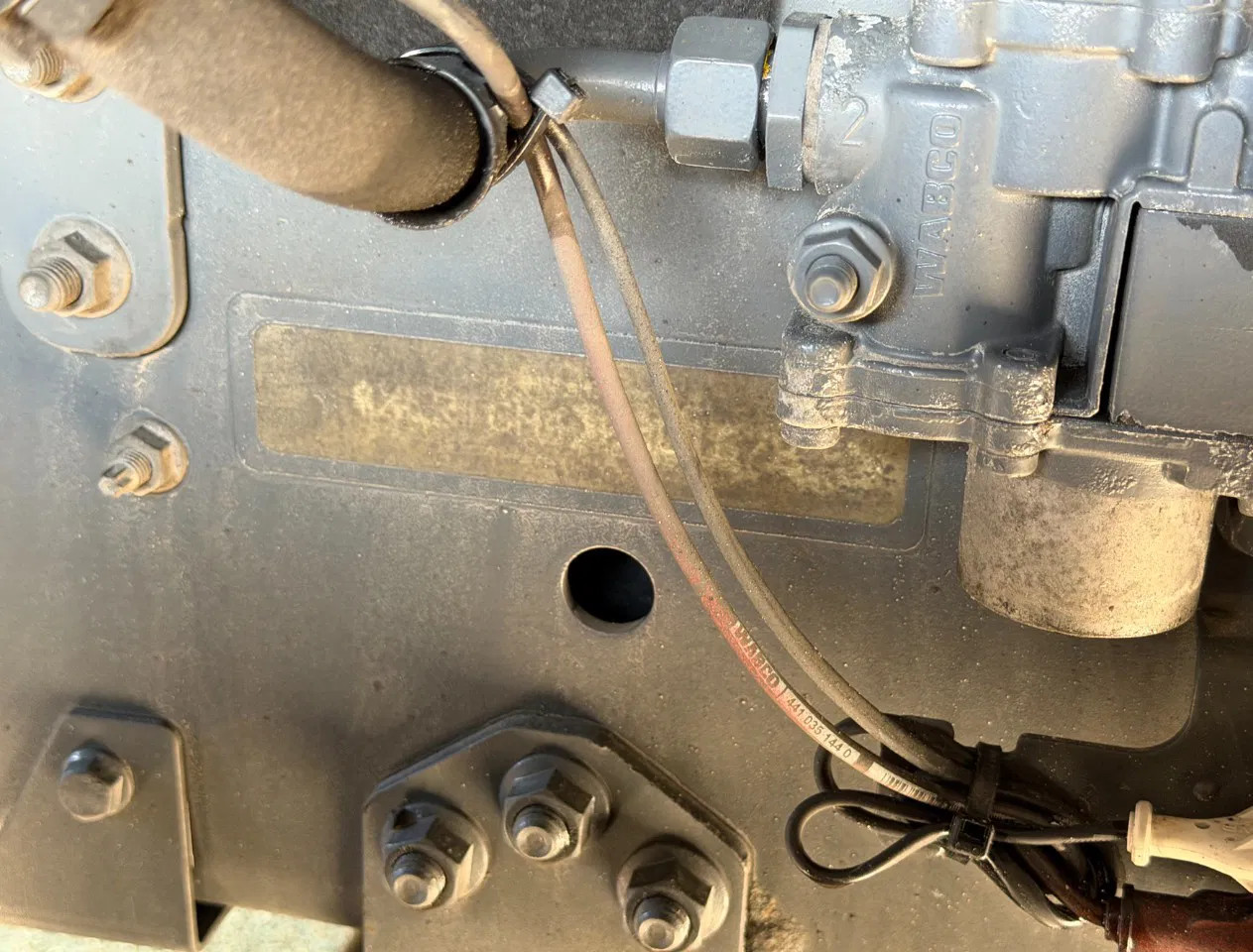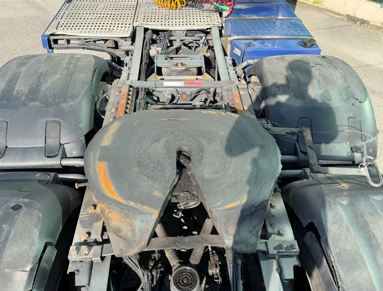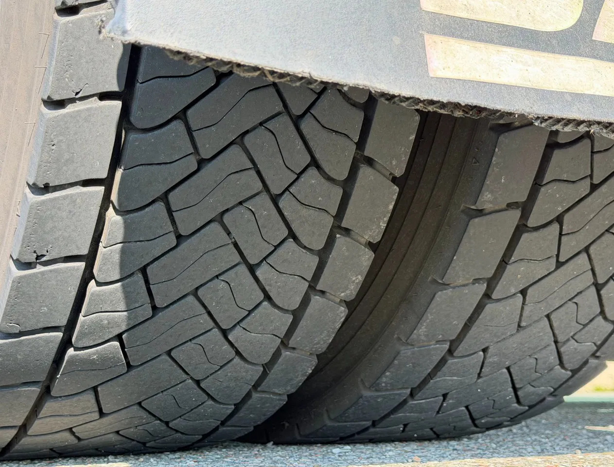 Eje trasero 2: Tamaño del neumático: 315/70 R22.5; Ruedas dobles; Carga máxima del eje: 11500 kg; Marca de ejes: Goodyear R; Dibujo del neumático izquierda interior: 40%; Dibujo del neumático izquierda exterior: 40%; Dibujo del neumático derecha exterior: 40%; Dibujo del neumático derecha exterior: 40%; Reducción: reducción sencilla