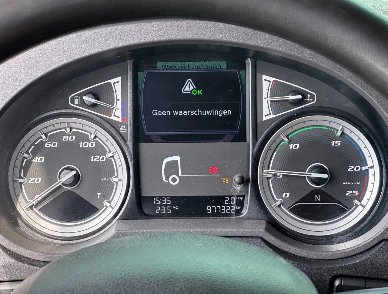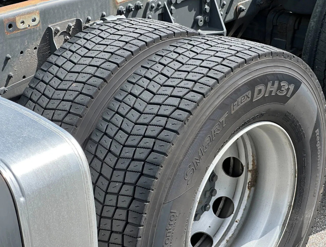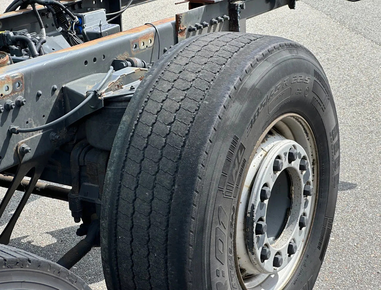 Eje trasero 1: Tamaño del neumático: 315/70 R22/5; Ruedas dobles; Bloqueo del diferencial; Carga máxima del eje: 11500 kg; Marca de ejes: Hankook; Dibujo del neumático izquierda interior: 70%; Dibujo del neumático izquierda exterior: 70%; Dibujo del neumático derecha exterior: 70%; Dibujo del neumático derecha exterior: 70%; Reducción: reducción sencilla