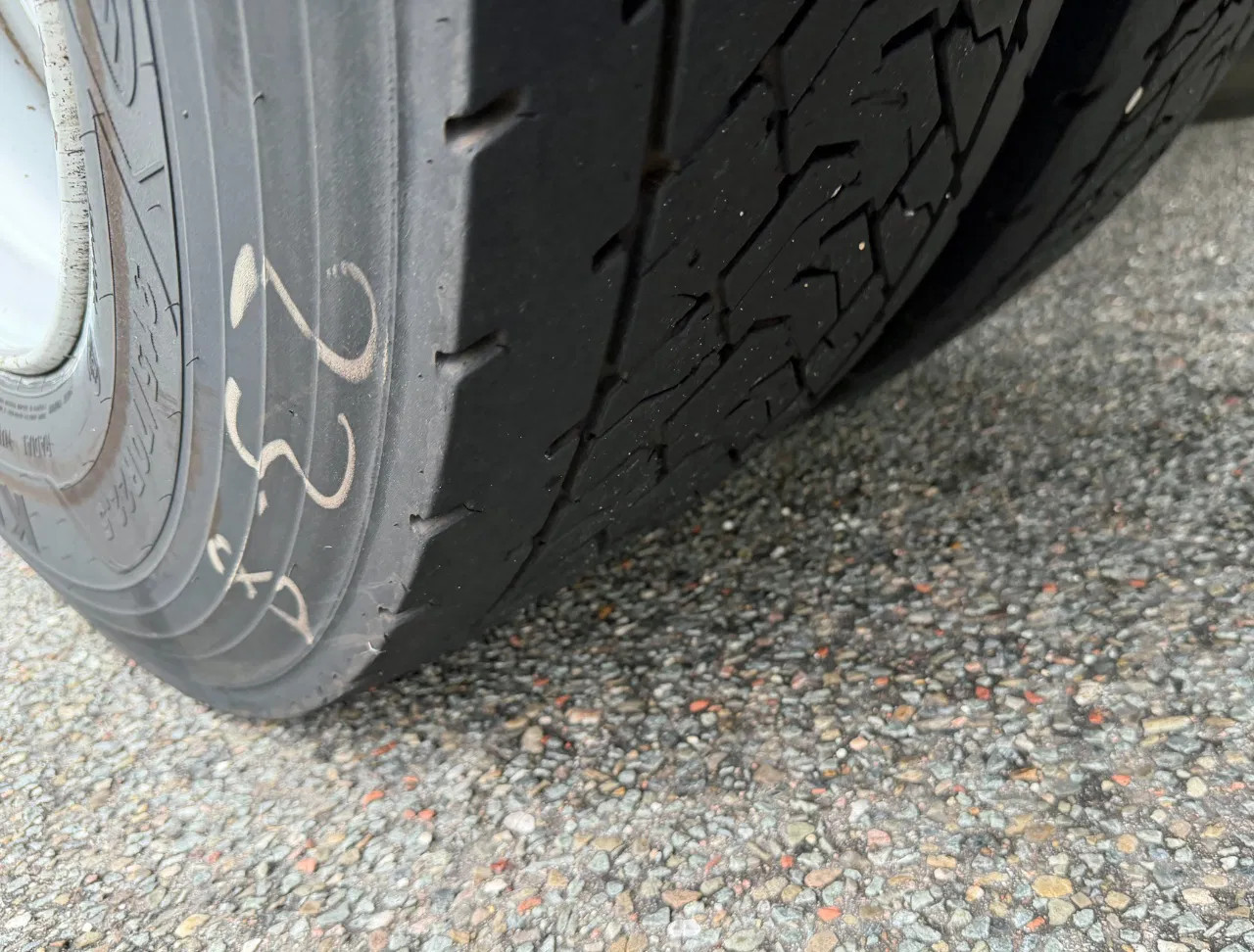 Eje trasero 2: Tamaño del neumático: 315/70 R22.5; Ruedas dobles; Carga máxima del eje: 11500 kg; Dibujo del neumático izquierda interior: 30%; Dibujo del neumático izquierda exterior: 30%; Dibujo del neumático derecha exterior: 30%; Dibujo del neumático derecha exterior: 30%; Reducción: reducción sencilla