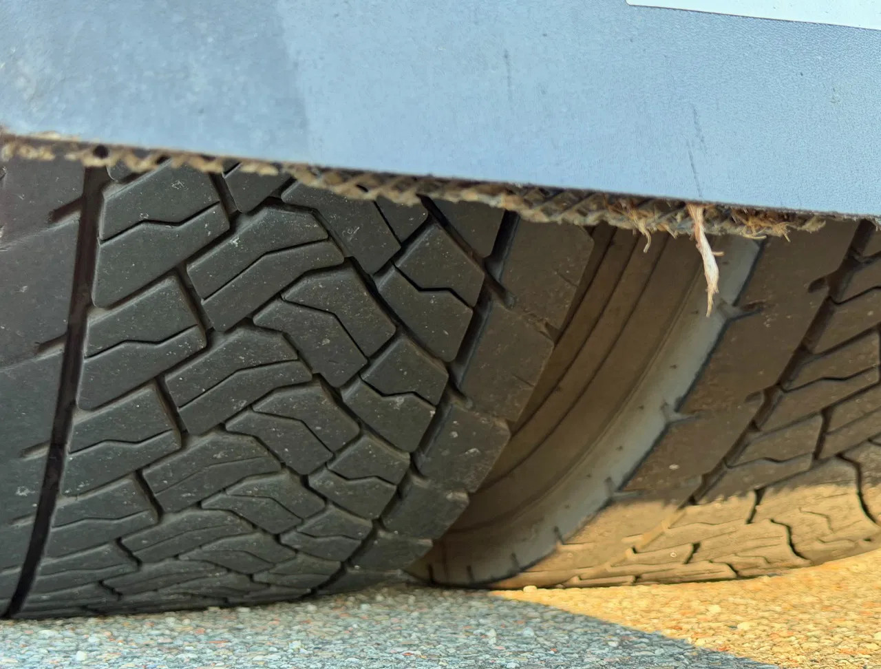 Eje trasero: Ruedas dobles; Carga máxima del eje: 11500 kg; Dibujo del neumático izquierda interior: 40%; Dibujo del neumático izquierda exterior: 40%; Dibujo del neumático derecha exterior: 40%; Dibujo del neumático derecha exterior: 40%; Reducción: reducción sencilla