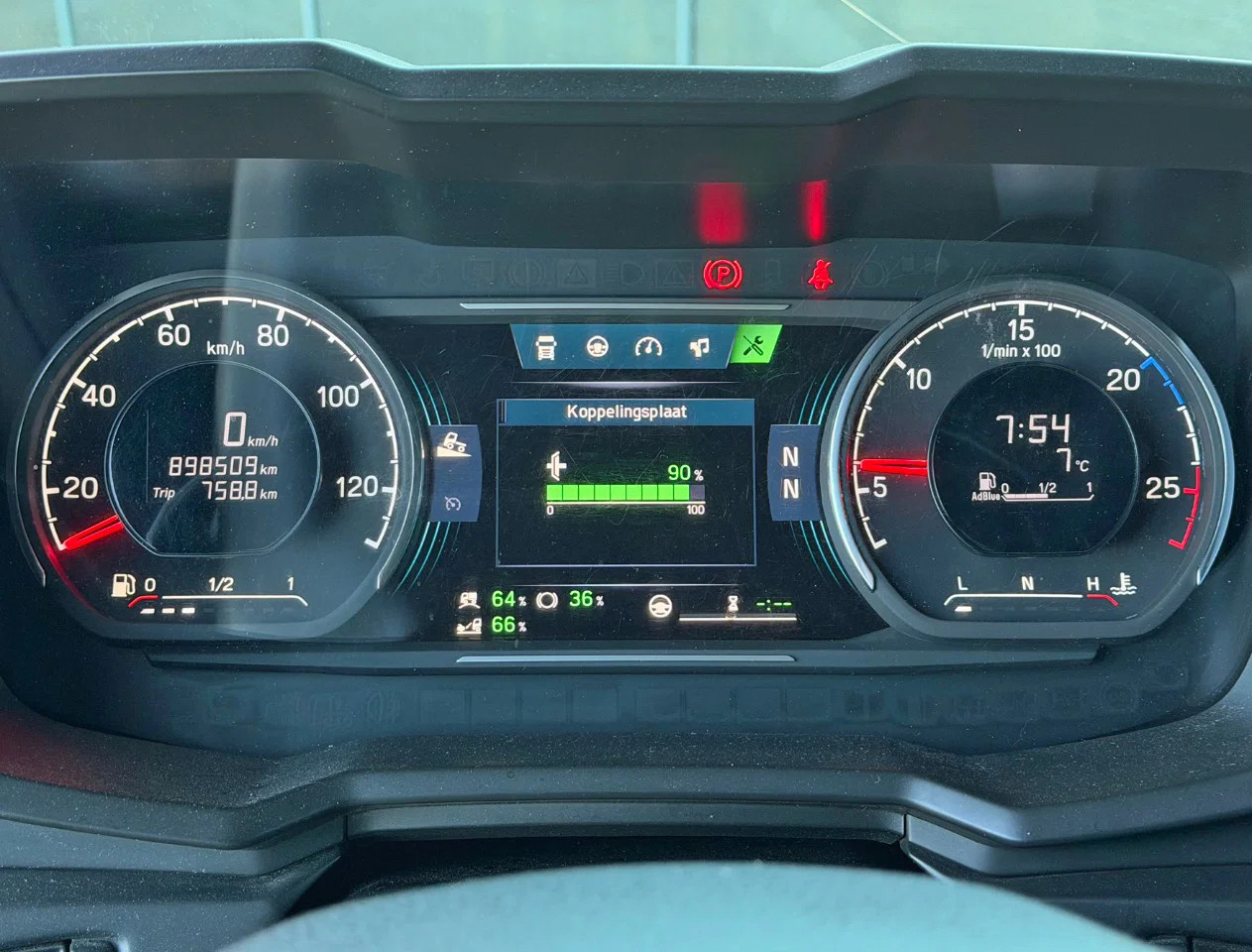 Eje delantero: Tamaño del neumático: 385/65 R22.5; Carga máxima del eje: 8000 kg; Dirección; Marca de ejes: Bridgestone R; Dibujo del neumático izquierda: 20%; Dibujo del neumático derecha: 20%