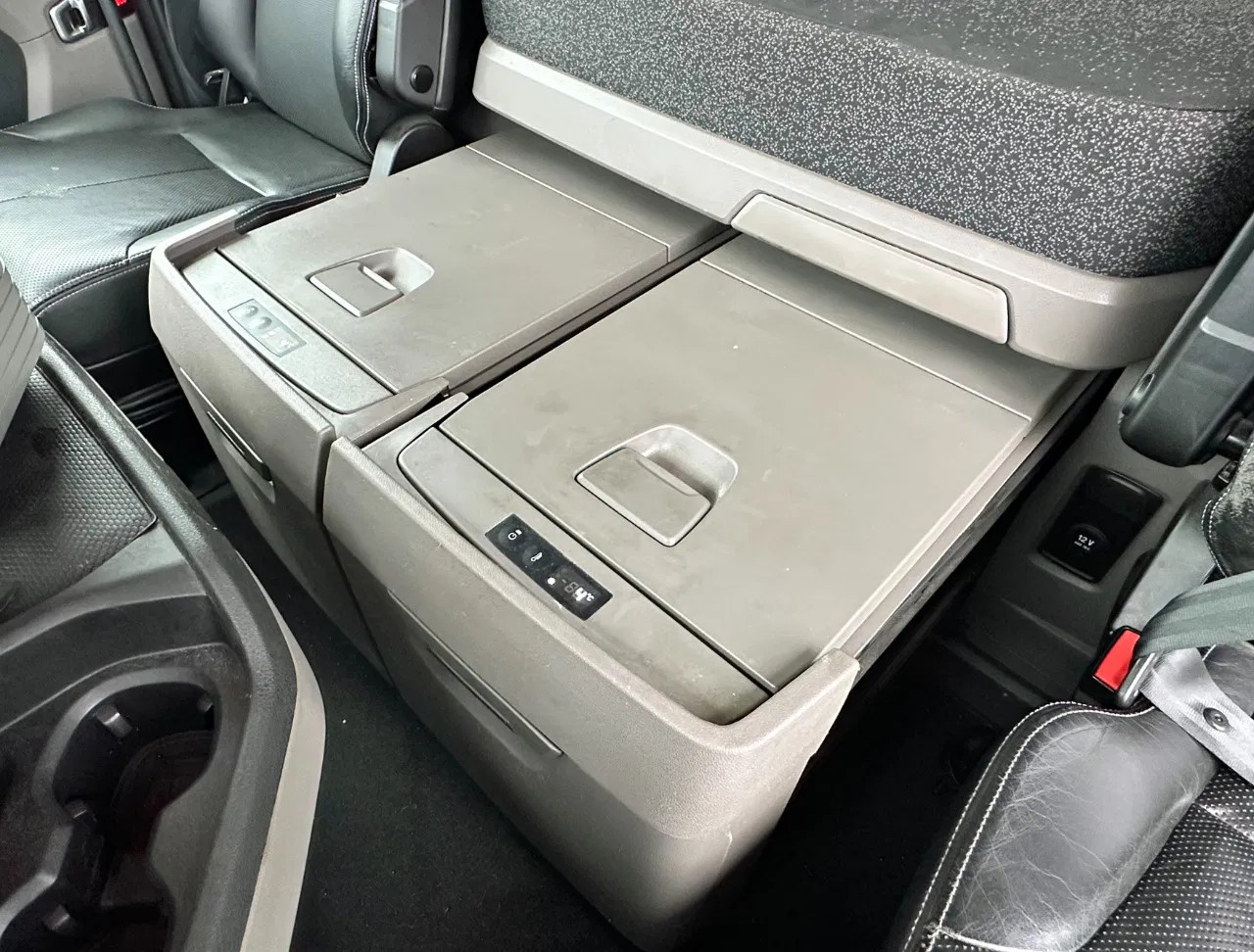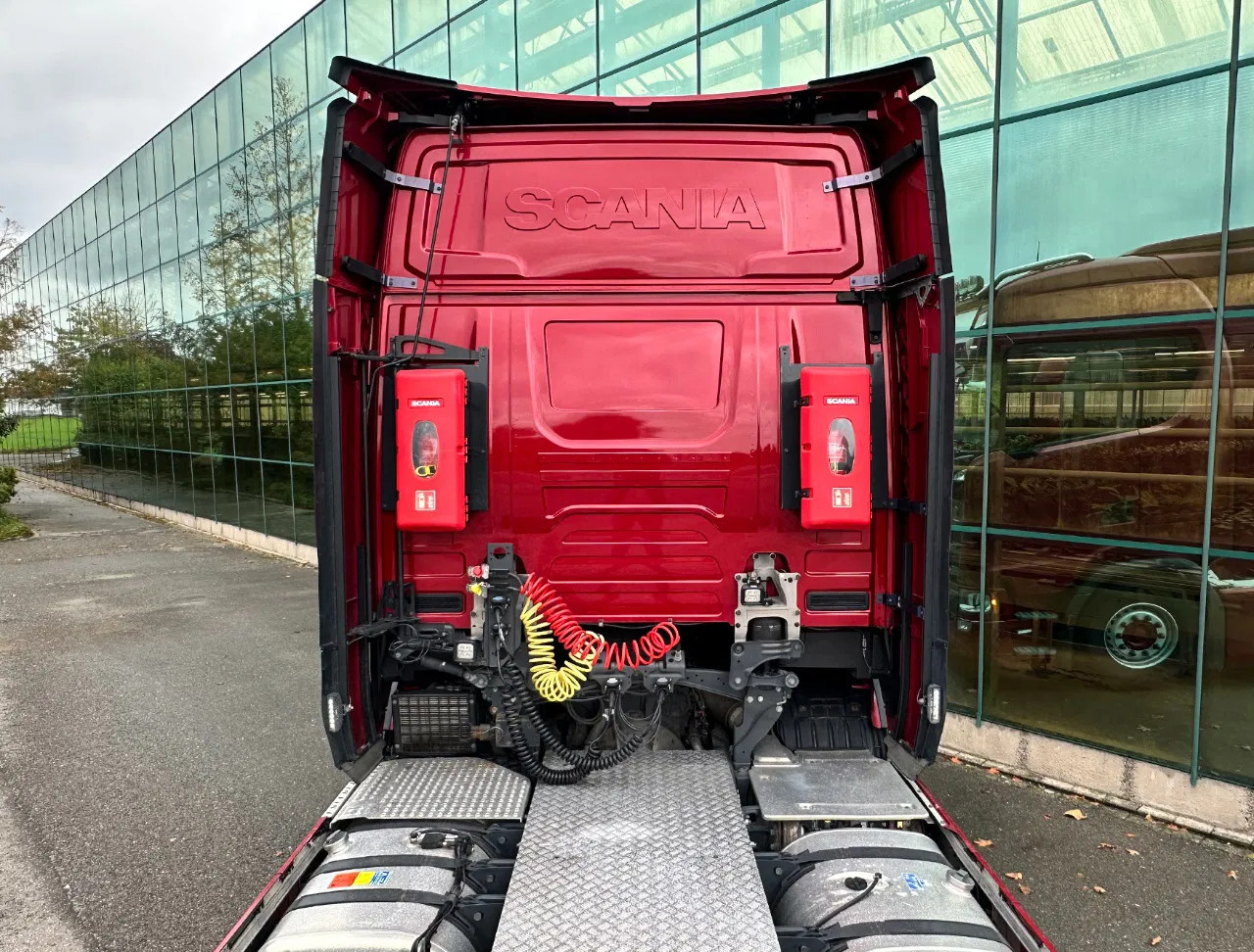 Extra’s: Retarder, Airsuspension on front axle, 2x leather Luxury seats, leather steering wheel, Airconditioning with climate control, Parking heater, Refrigeration, Navigationsystem, 27MC, Adaptive Cruise control, 2x aluminium tanks with total volume of 960 liters, extra lights, Spoiler, Fenders, Side-skirts, Service history available at Scania, New annual inspection (APK) done by Scania, Brakes are 74%, 74% and 82%, Directly available and ready for work, etc, etc.