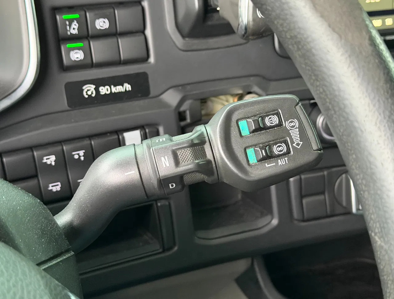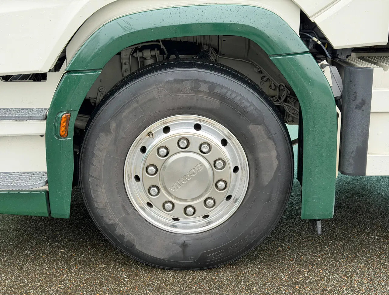 Eje delantero: Tamaño del neumático: 385/65 R22.5; Llantas de aleación; Carga máxima del eje: 9000 kg; Dirección; Dibujo del neumático izquierda: 30%; Dibujo del neumático derecha: 30%