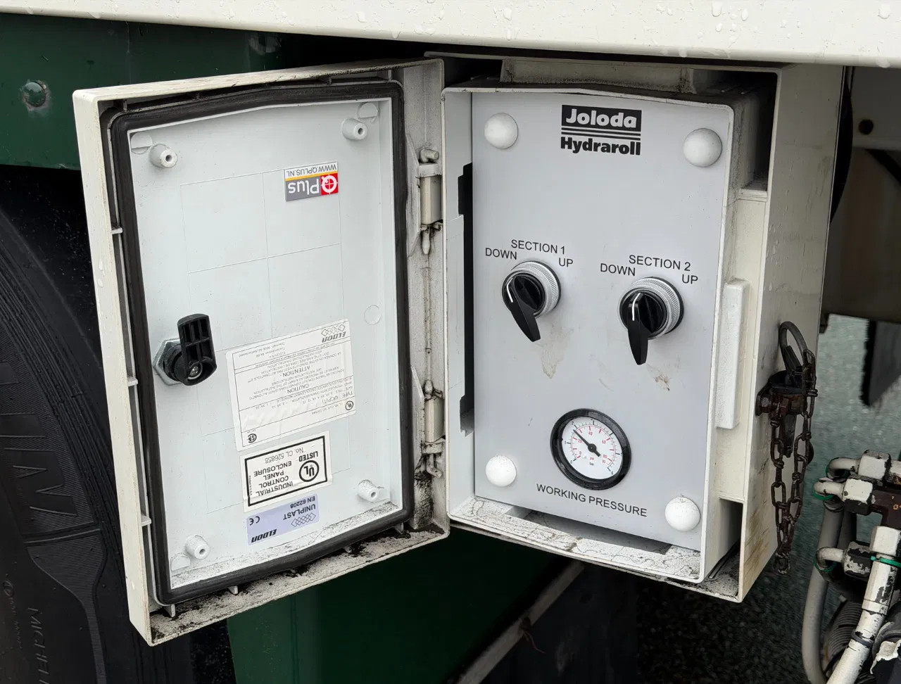 Eje trasero 2: Tamaño del neumático: 385/65 R22.5; Llantas de aleación; Eje elevador; Carga máxima del eje: 7500 kg; Dibujo del neumático izquierda: 30%; Dibujo del neumático derecha: 30%
