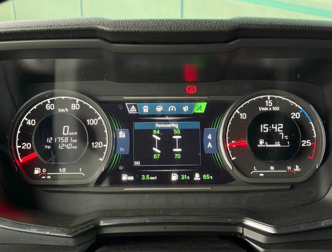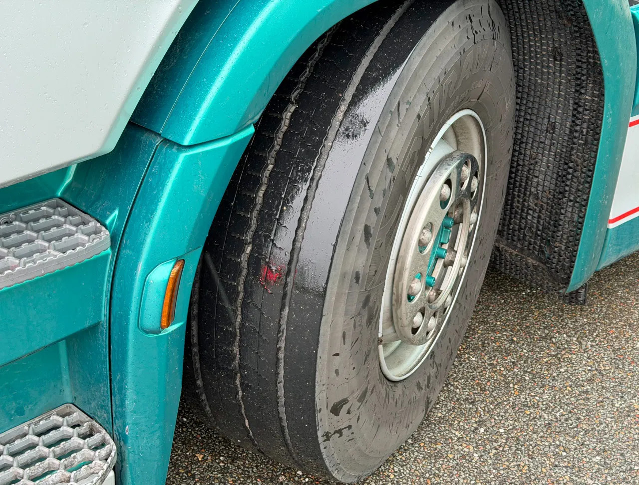 Essieu avant: Dimension des pneus: 385/65 R22.5; Charge maximale sur essieu: 8000 kg; Direction; Marque essieux: Bridgestone; Sculptures des pneus gauche: 60%; Sculptures des pneus droite: 60%