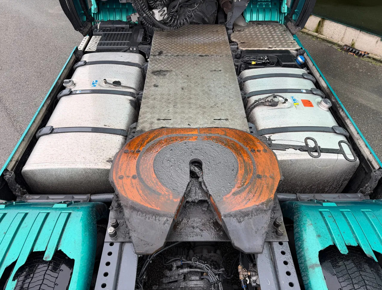 Essieu arrière: Dimension des pneus: 315/70 R22.5; Roues jumelées; Charge maximale sur essieu: 11500 kg; Marque essieux: Michelin; Sculptures des pneus gauche interne: 20%; Sculptures des pneus gauche externe: 20%; Sculptures des pneus droit externe: 20%; Sculptures des pneus droit externe: 20%; Réduction: réduction simple
