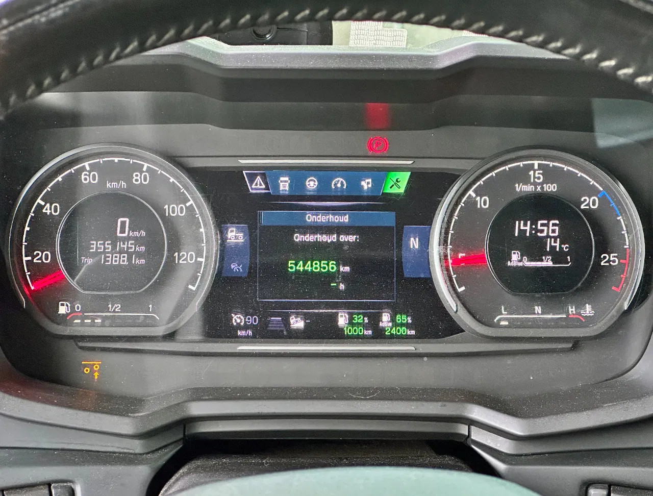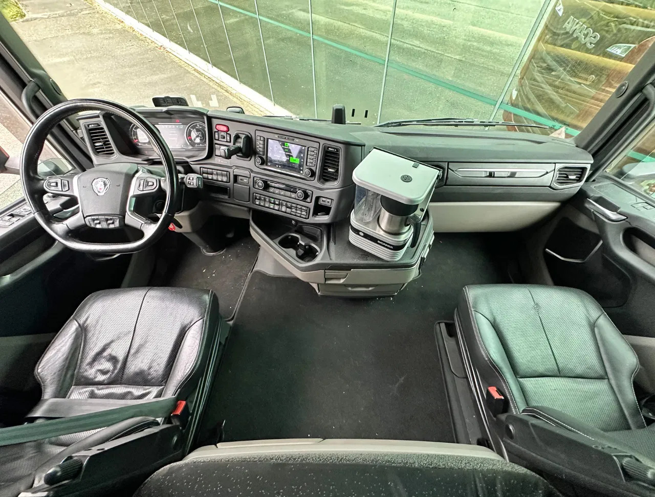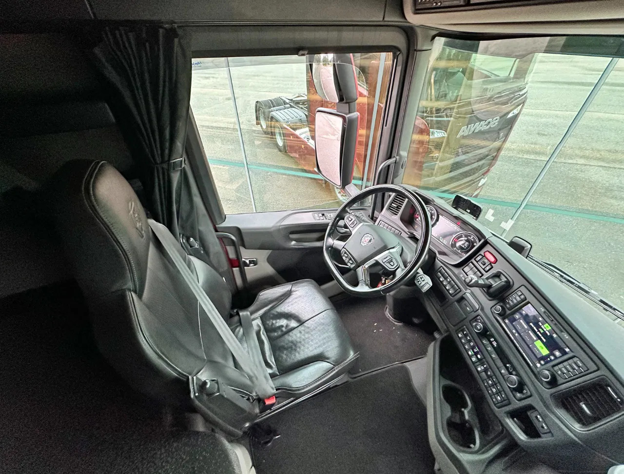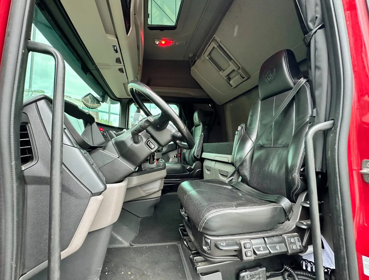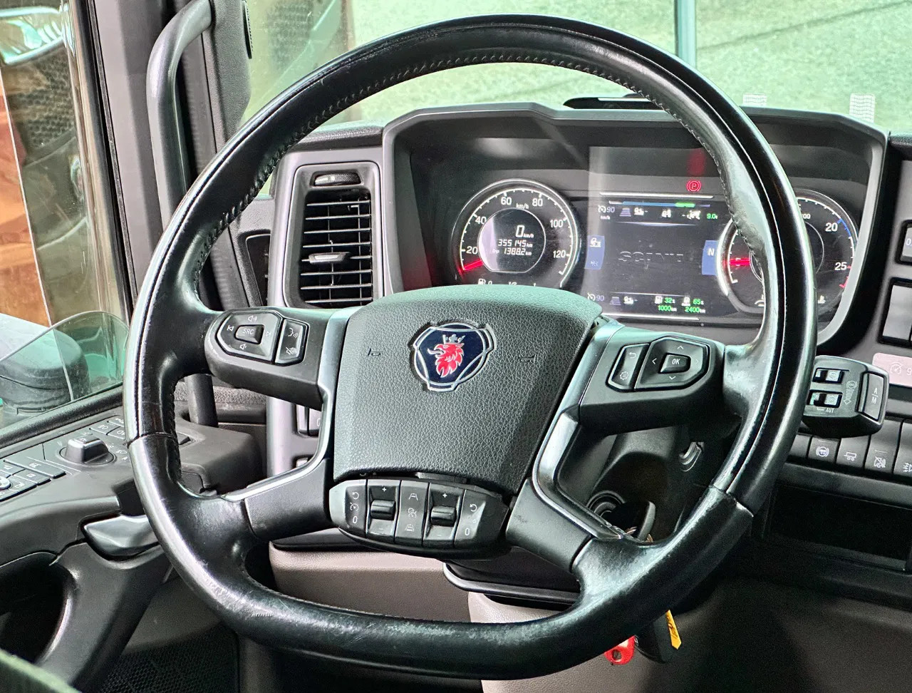 Extra’s: Retarder, Airsuspension on front axle, 2x leather Luxury seats, leather steering wheel, Airconditioning with climate control, Parking heater, Refrigeration, Navigationsystem, 27MC, Adaptive Cruise control, 2x aluminium tanks with total volume of 960 liters, extra lights, Spoiler, Fenders, Side-skirts, Service history available at Scania, New annual inspection (APK) done by Scania, Brakes are 74%, 74% and 82%, Directly available and ready for work, etc, etc.