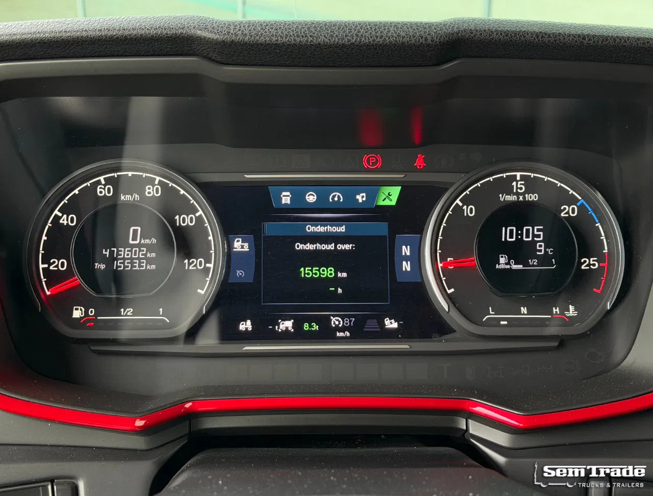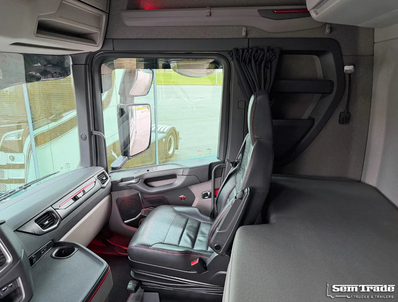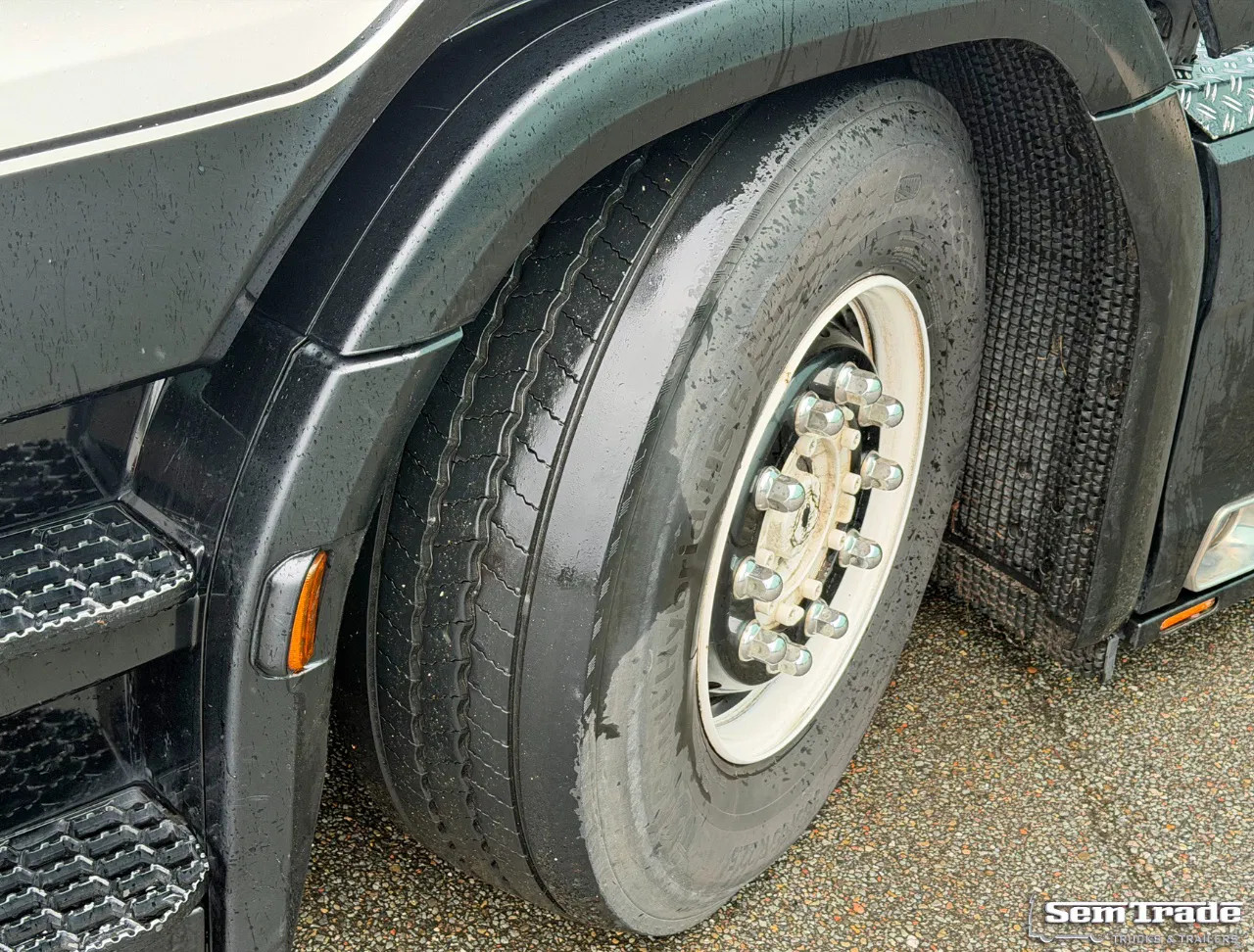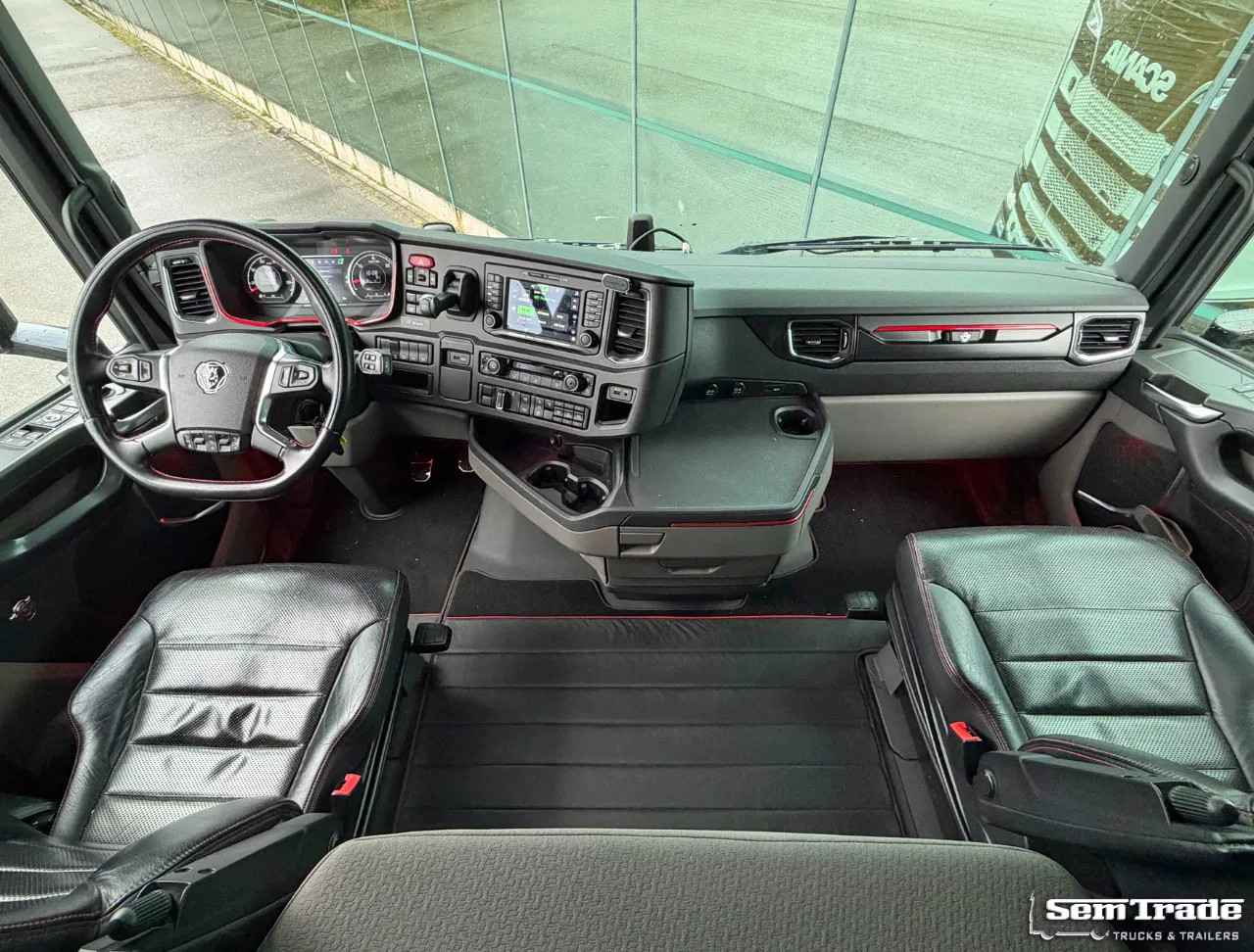 Extra’s: Retarder, Airsuspension on front axle, 4 balloons on the rear axle, King of the Road package, Double windows, 2x leather Luxury seats, Leather steering wheel, Airconditioning with climate control, Parking airconditioning, Parking heater, Refrigerator, Navigationsystem, 27MC, Adaptive Cruise control, 2x tanks (1.200 liters),Hose racket, Catwalk, Rear bumper, Many extra lights, Spoiler, Fenders, Side-skirts, Airhorns, Rehma-connection for tail lift, Complete service history available at Scania, Clutch is 90%, Truck comes straight from first owner/driver, Directly available and ready for work, etc, etc.
