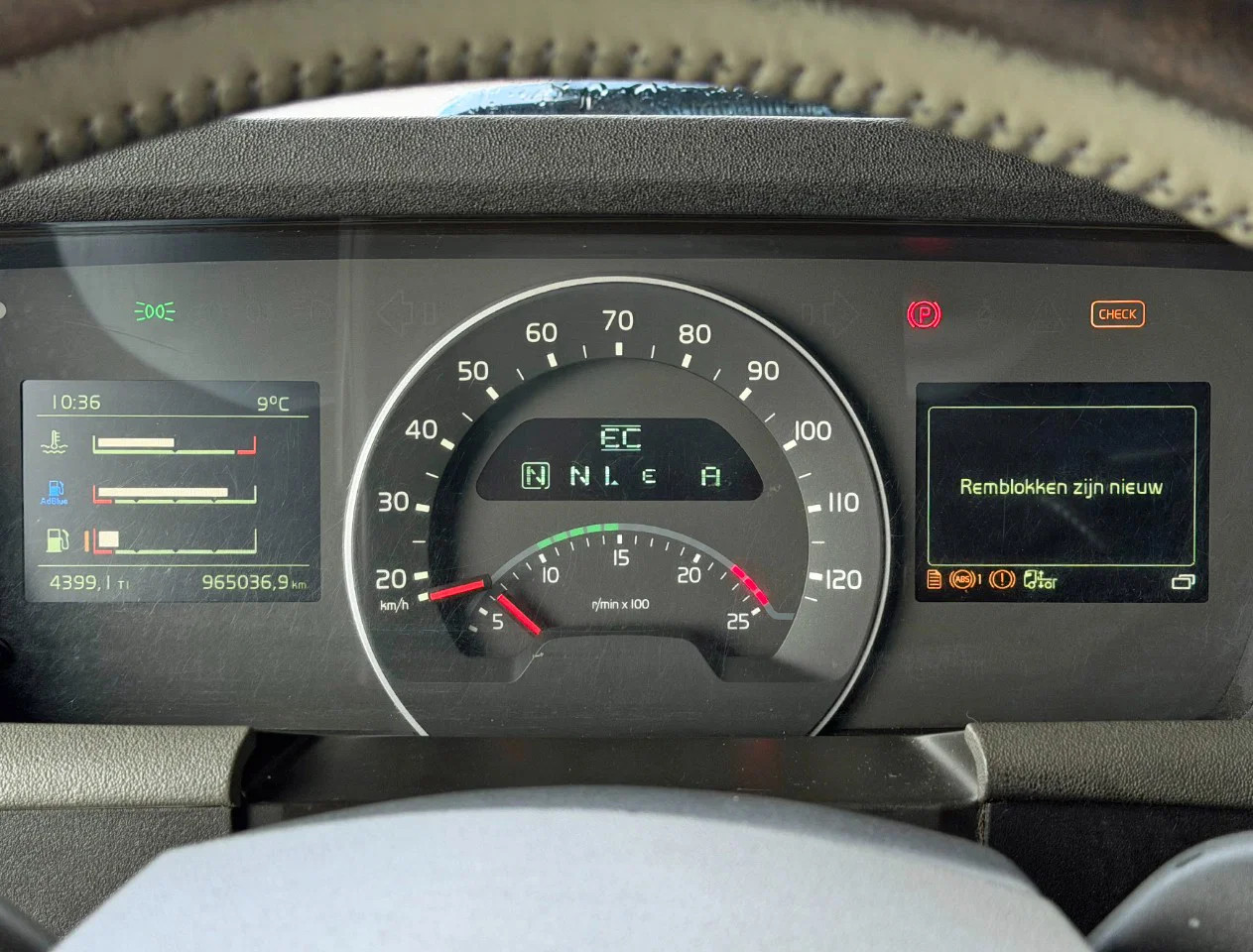 Essieu avant: Dimension des pneus: 385/55 R22.5; Charge maximale sur essieu: 9000 kg; Direction; Sculptures des pneus gauche: 50%; Sculptures des pneus droite: 50%
