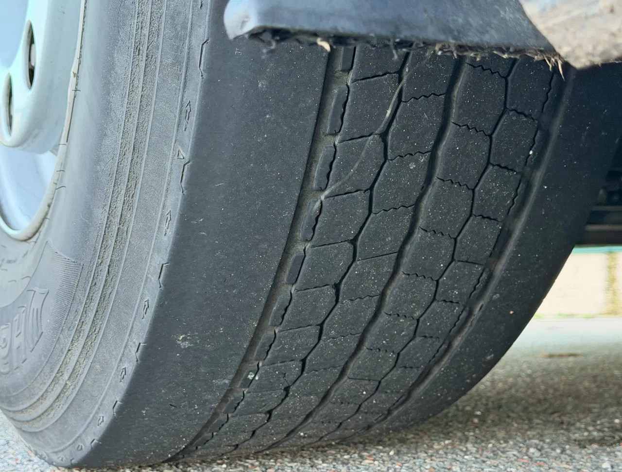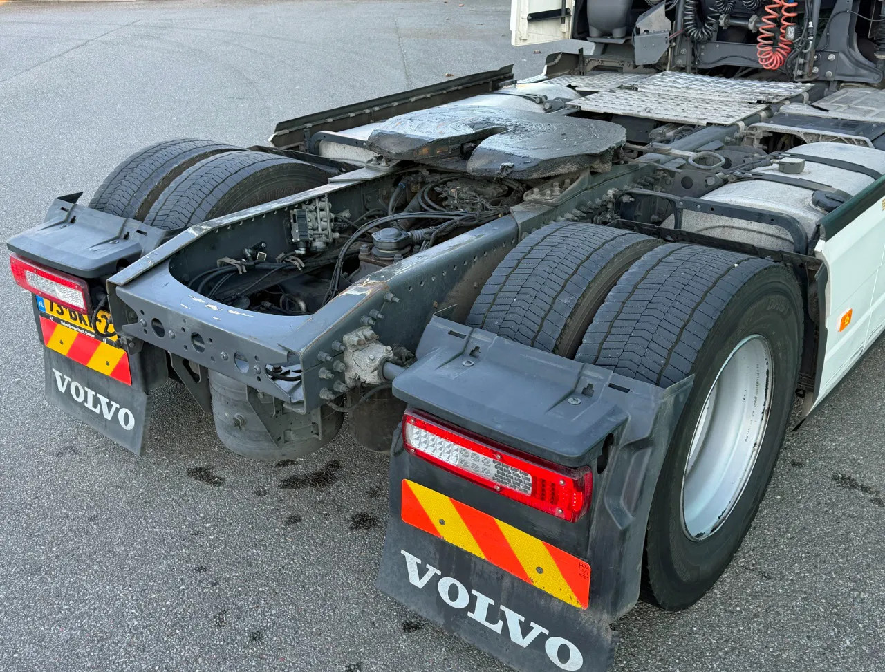 Essieu arrière: Dimension des pneus: 315/70 R22.5; Roues jumelées; Charge maximale sur essieu: 11500 kg; Sculptures des pneus gauche interne: 50%; Sculptures des pneus gauche externe: 50%; Sculptures des pneus droit externe: 50%; Sculptures des pneus droit externe: 50%; Réduction: réduction simple