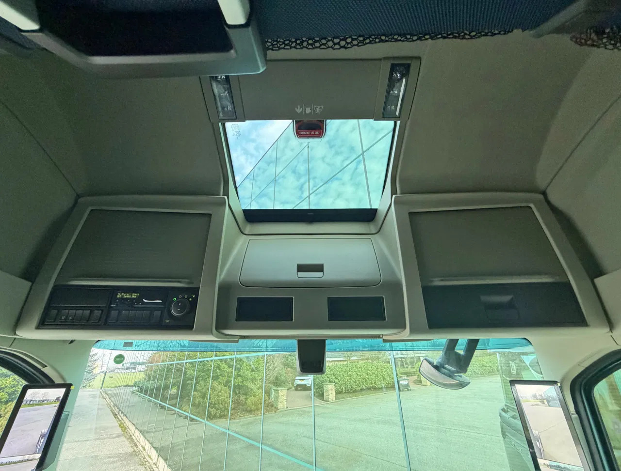 Essieu arrière: Dimension des pneus: 315/70 R22.5; Roues jumelées; Sculptures des pneus gauche interne: 95%; Sculptures des pneus gauche externe: 95%; Sculptures des pneus droit externe: 95%; Sculptures des pneus droit externe: 95%; Réduction: réduction simple