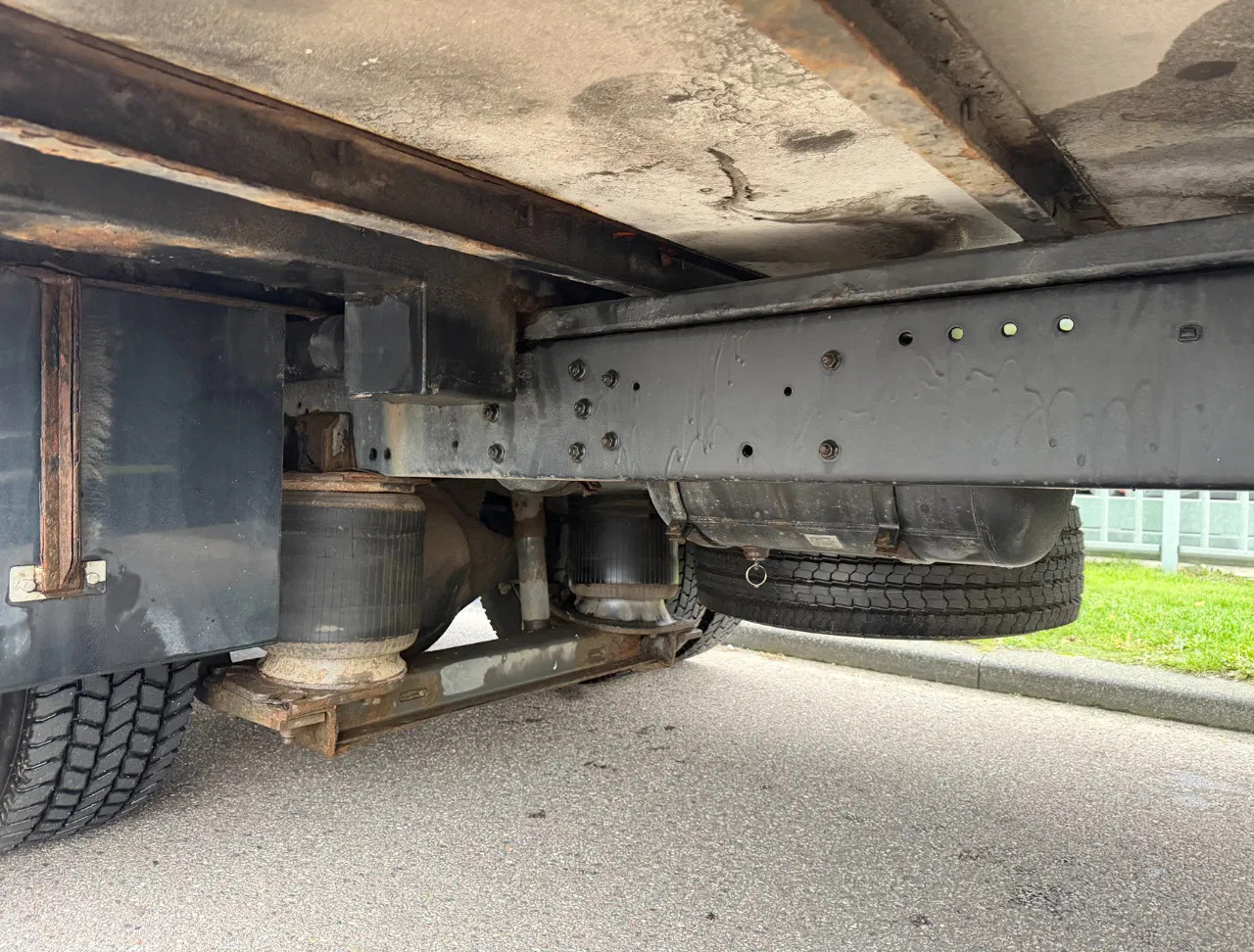 Achteras: Bandenmaat: 245/70 R17,5; Dubbellucht; Max. aslast: 5992 kg; Bandenprofiel linksbinnen: 60%; Bandenprofiel linksbuiten: 60%; Bandenprofiel rechtsbinnen: 60%; Bandenprofiel rechtsbuiten: 60%