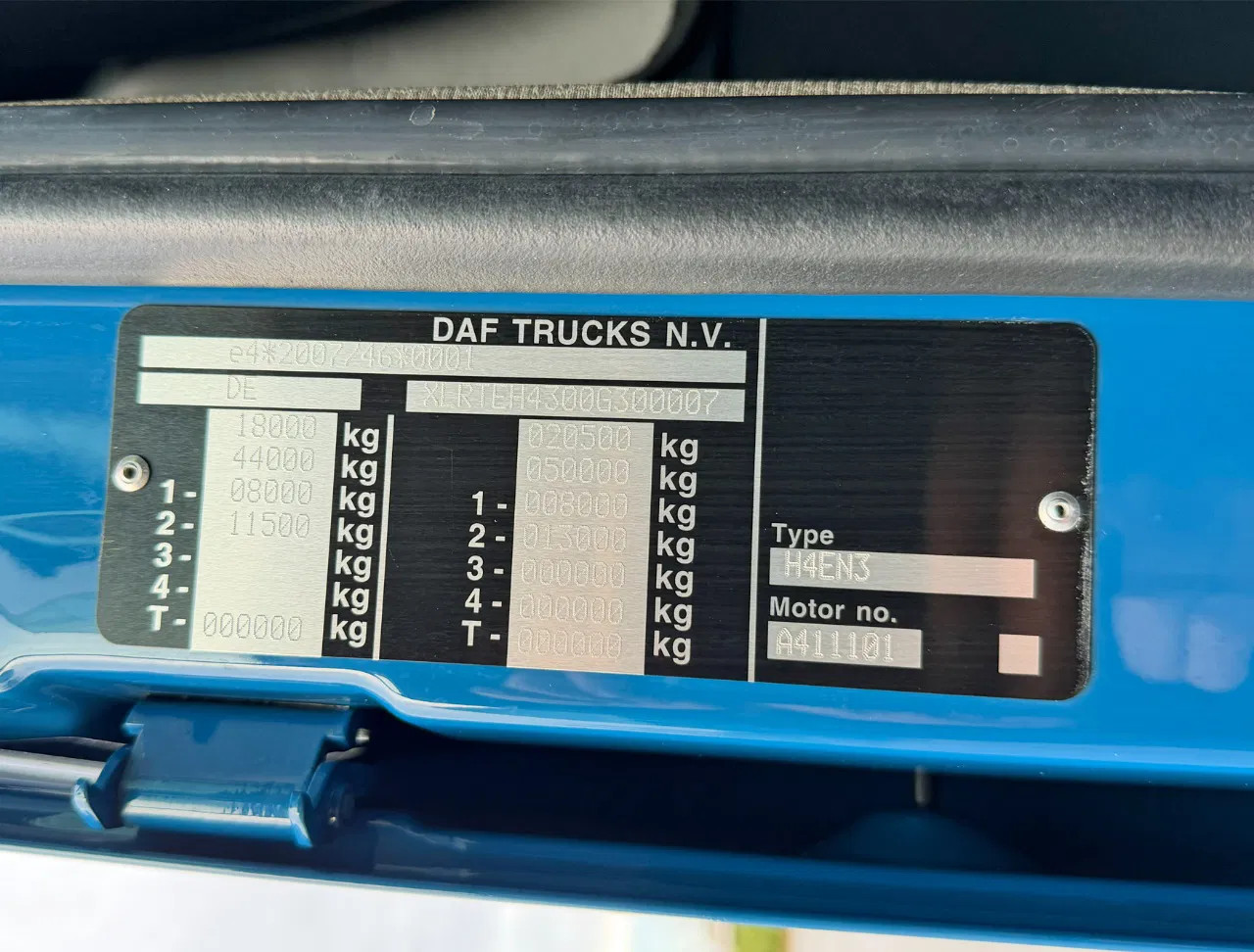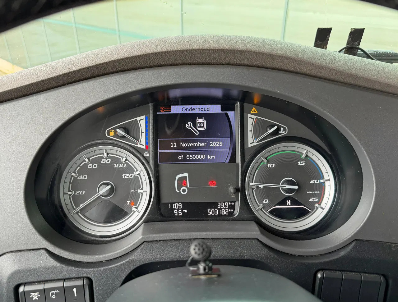 Achteras: Bandenmaat: 315/70 R22.5; Dubbellucht; Max. aslast: 11500 kg; Bandenprofiel linksbinnen: 50%; Bandenprofiel linksbuiten: 50%; Bandenprofiel rechtsbinnen: 50%; Bandenprofiel rechtsbuiten: 50%; Reductie: enkelvoudige reductie