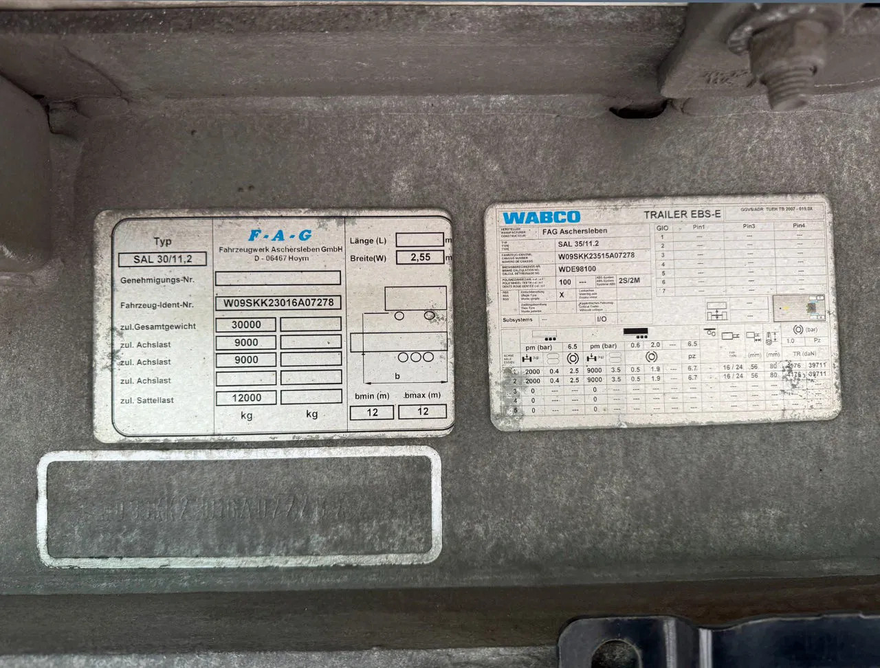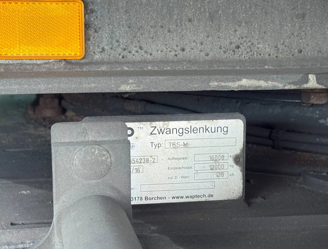 Achteras 1: Max. aslast: 9000 kg; Bandenprofiel links: 30%; Bandenprofiel rechts: 30%