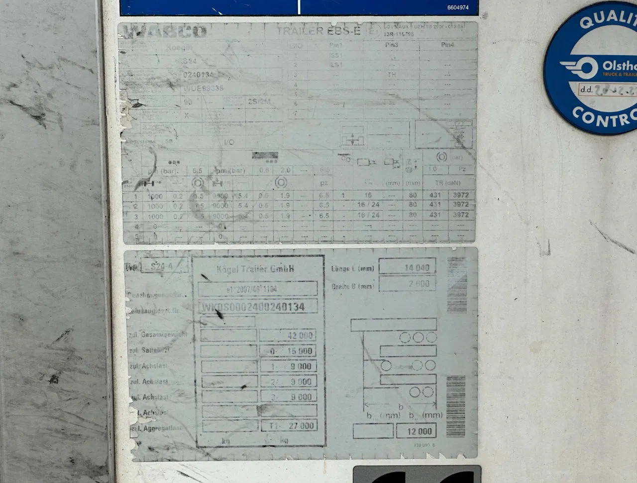 Achteras 1: Max. aslast: 8000 kg; Bandenprofiel links: 50%; Bandenp