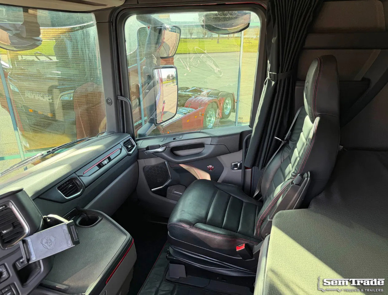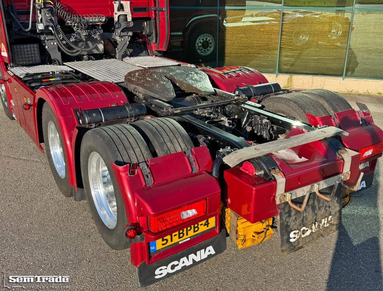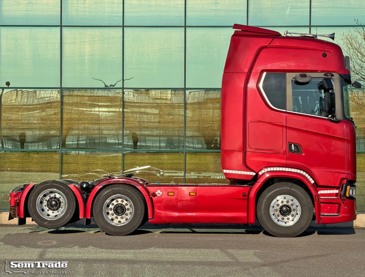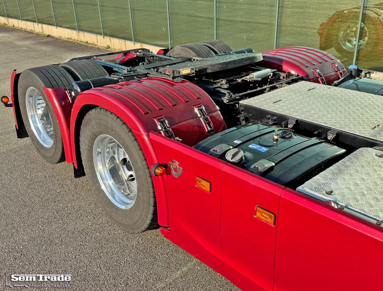 Extra’s: 50 Years V8 Edition, Retarder, Full Air suspension, Liftaxle, Airconditioning with climate control, Parking Airconditioning, Parking heater, Refrigeration, 1.030 liter diesel tanks, 2 Beds, Spoiler, Fenders, Side-Skirts, Many extra lights, Catwalk, Alcoa DuraBrights, Clutch done at 780.000 km, Turbo done at 728.000 km, Full Service history at Scania, Truck comes directly from 1 owner (owner/driver).