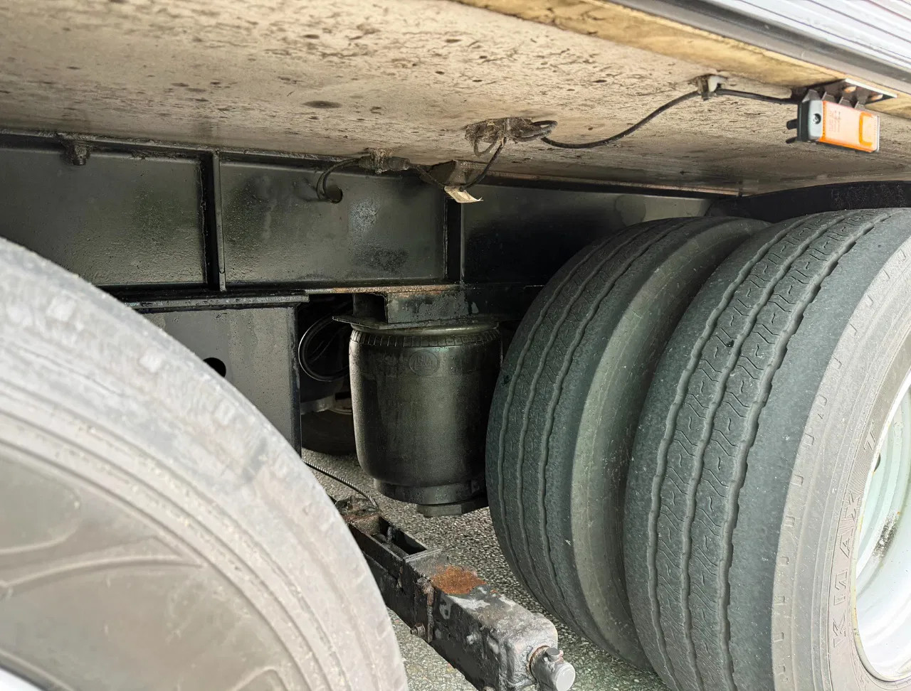 Hinterachse 2: Doppelbereift; Max. Achslast: 9000 kg; Reifen Profil links innnerhalb: 60%; Reifen Profil links außen: 60%; Reifen Profil rechts innerhalb: 60%; Reifen Profil rechts außen: 60%