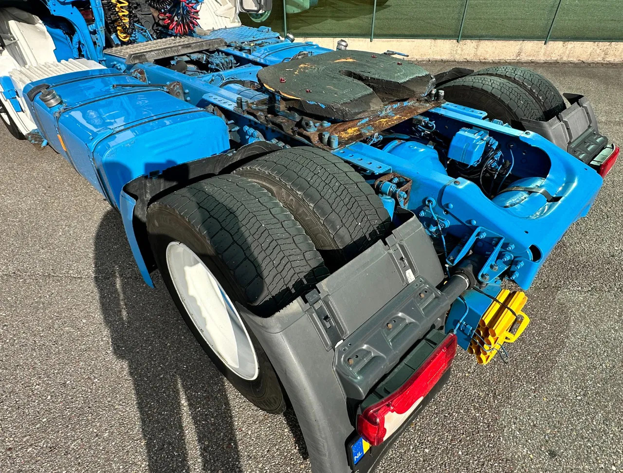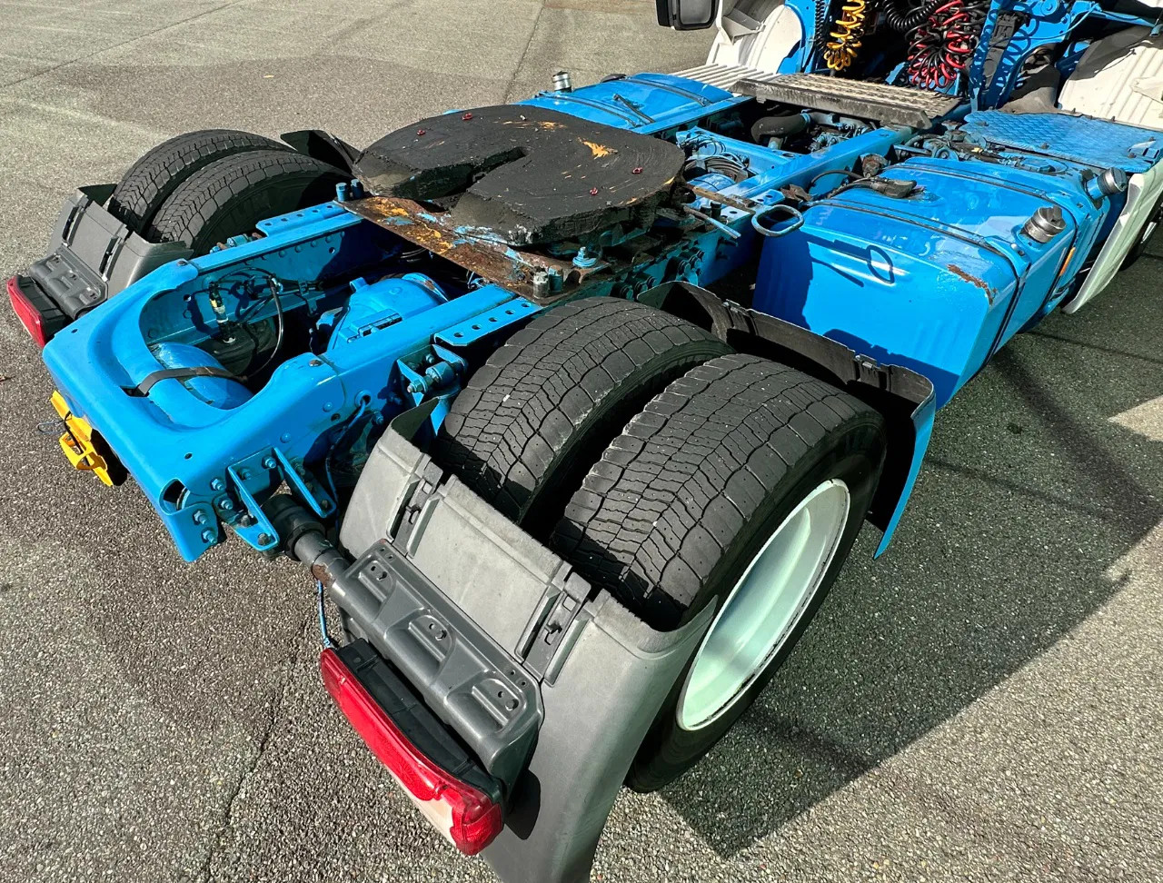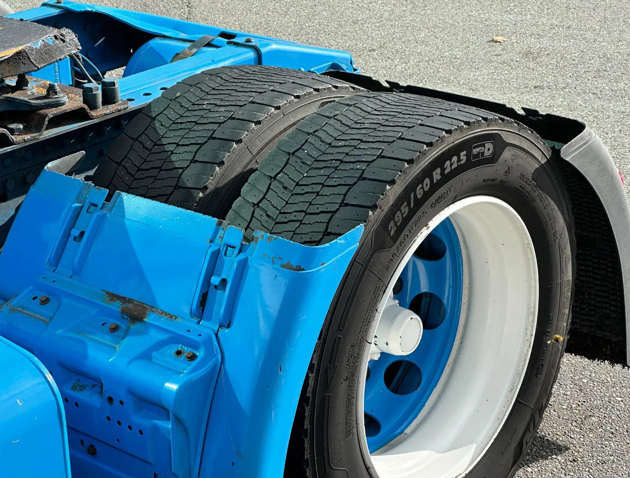 Hinterachse: Refenmaß: 295/60 R22.5; Doppelbereift; Differenzialsperre; Max. Achslast: 11500 kg; Reifen Profil links innnerhalb: 30%; Reifen Profil links außen: 30%; Reifen Profil rechts innerhalb: 30%; Reifen Profil rechts außen: 30%