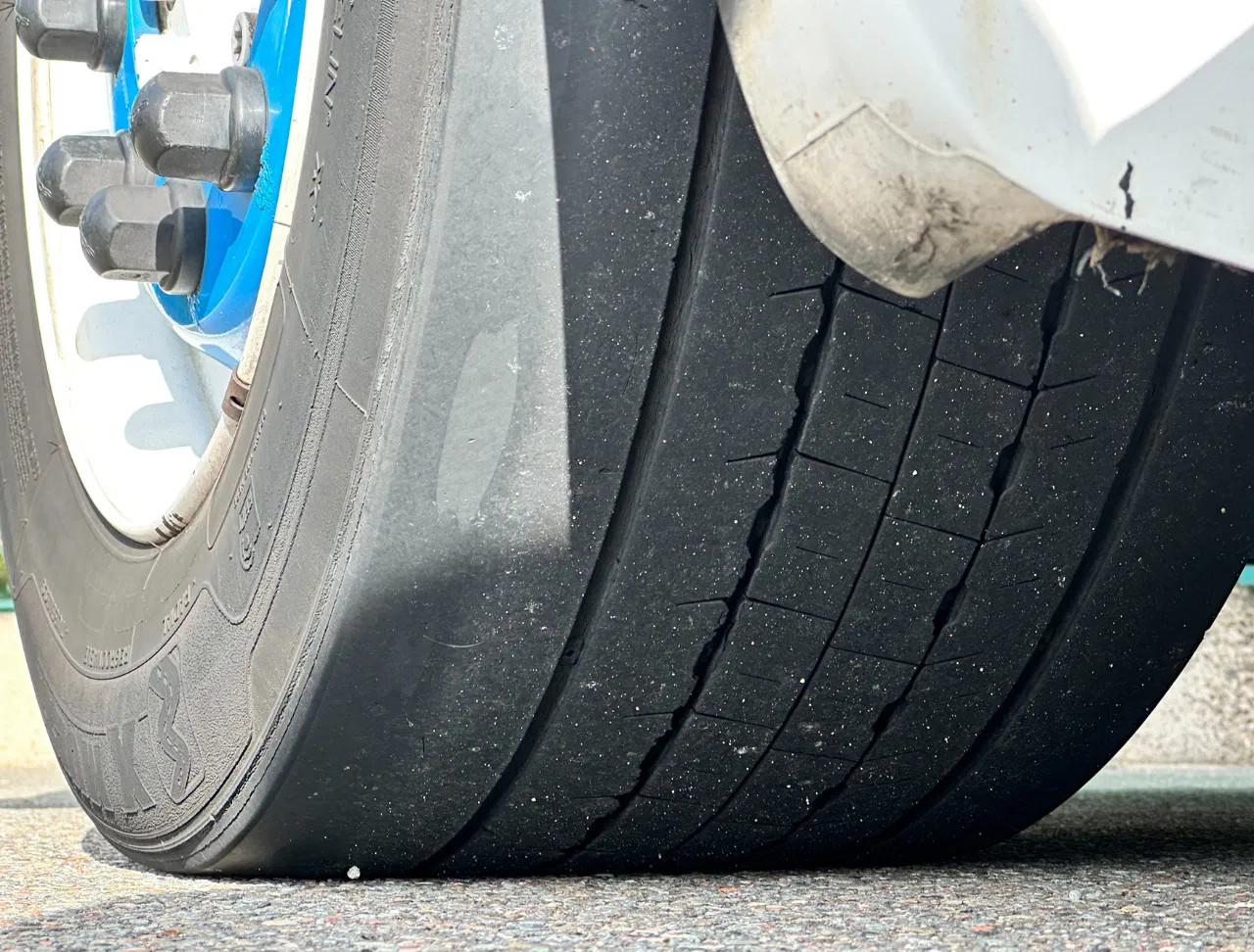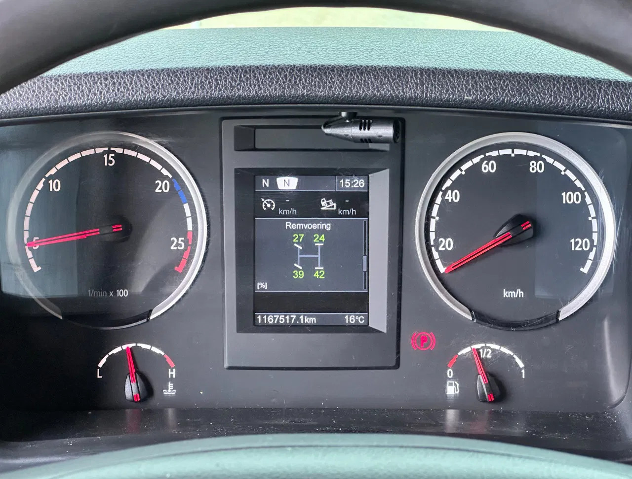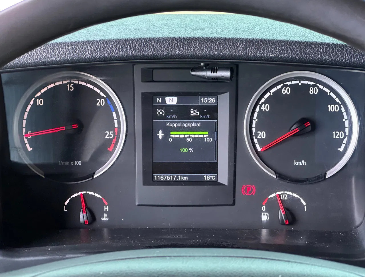 Hinterachse: Refenmaß: 295/60 R22.5; Doppelbereift; Differenzialsperre; Max. Achslast: 11500 kg; Reifen Profil links innnerhalb: 30%; Reifen Profil links außen: 30%; Reifen Profil rechts innerhalb: 30%; Reifen Profil rechts außen: 30%