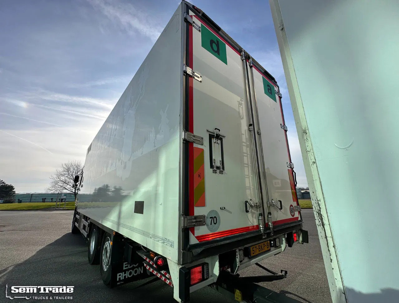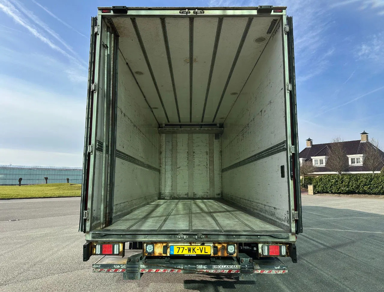 Extra's: In length adjustable draw bar (40 cm), Dhollandia 2.000 kg lift (Renewed in 2021!!), ABS, EBS, SAF axles with disc brakes, 2 Toolboxes, Fully isolated box build by Martini, 5x stainless steel rails in floor and ceiling, 1x horizontal load loack rails, FrigoBlock Refrigation (Runs on 380V or on the refrigation of the truck), Extra lights, back doors, rear bumper, Ferry connections, 2x spare tyres, Complete service history availableDirectly available and ready for work, Box is large enough for 24 CC (Danish Trolleys), 14 normal pallets or 38 Euro pallets, etc, etc
