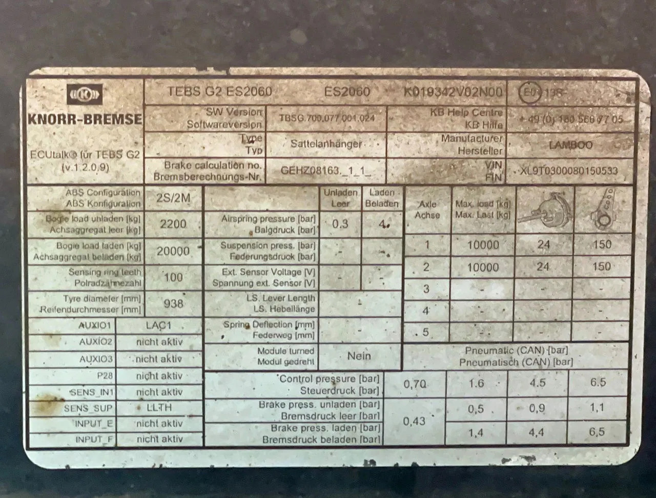 Rear axle 1: Max. axle load: 10000 kg; Tyre profile left: 40%