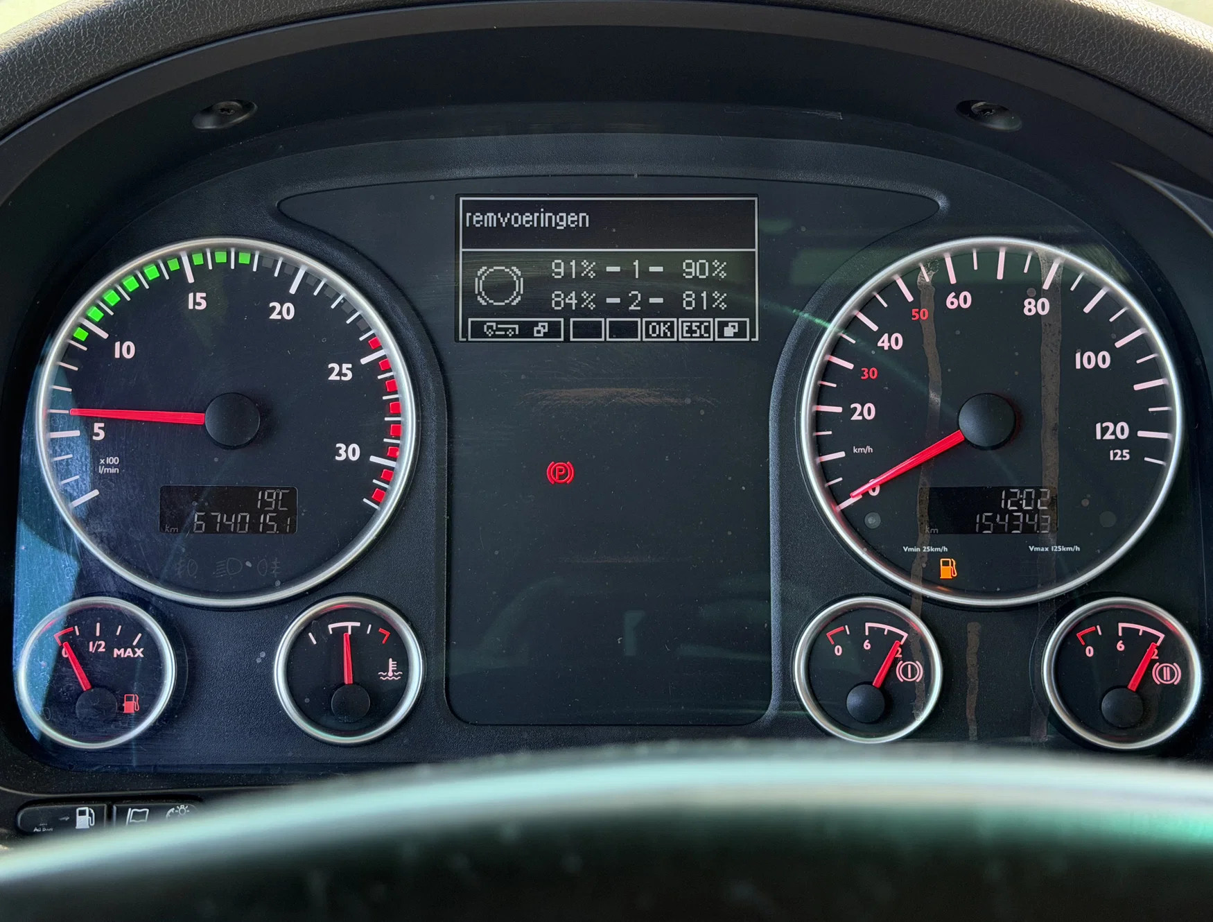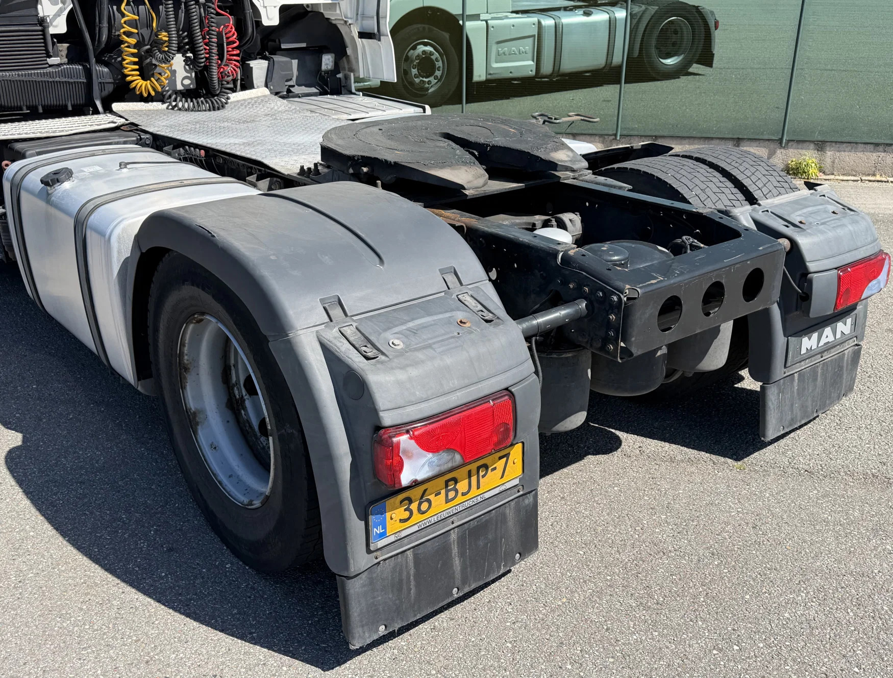 Rear axle: Double wheels; Max. axle load: 11500 kg; Make axles: Bridgestone R; Tyre profile left inner: 30%; Tyre profile left outer: 30%; Tyre profile right outer: 30%; Tyre profile right outer: 30%; Reduction: single reduction