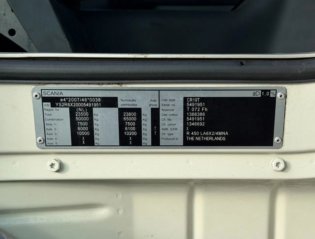 Scania R450 TOPLINE 6X2 TWINSTEER RETARDER 2X TANKS PARK-COOLING NL TRUCK