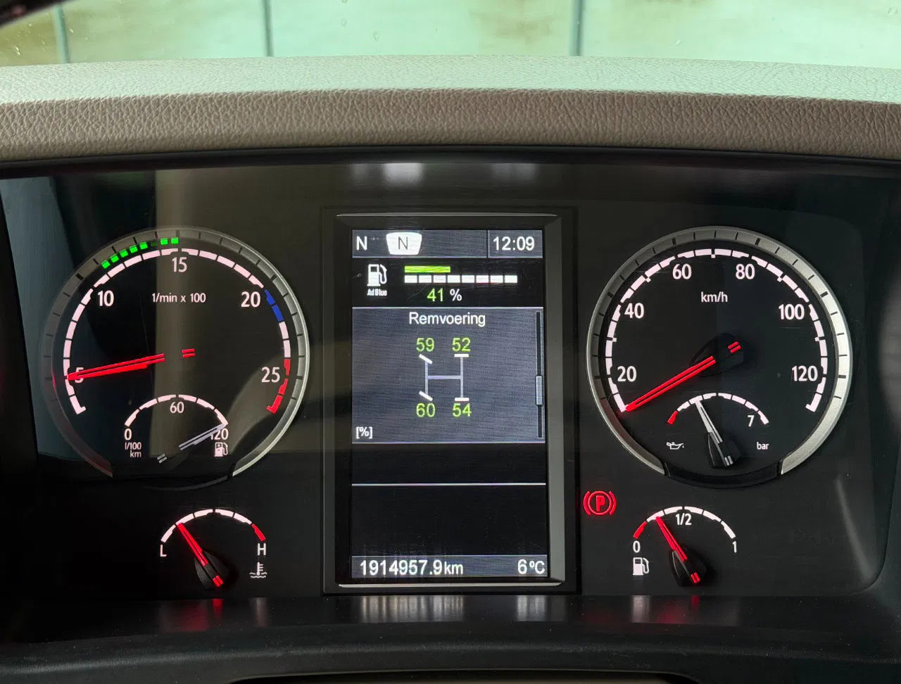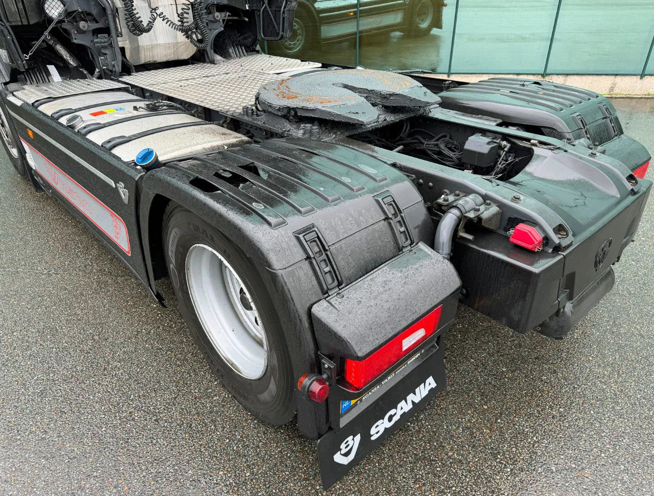 Extra’s: King of the Road package, Retarder, Airsuspended front axle, Complete upholstered cabin done by Special Interior (Top class, still in perfect condition), Double Windows, Navigation system, Climate Control with airconditioning, Parking Airconditioning, Parking heater, Refrigeration, 2x luxury leather seats, Cruise Control, Xenon headlights, 1.200 liter aluminium tank (Original Scania), CLANG connection, Many extra lights, Spoiler, Fenders, Side-skirts, Full service at Scania, All repairs done by Scania, Many parts are replaced recently, Truck comes straight from the first owner, Truck has had only 2 drivers in its whole career, If we say this truck has driven 500.000 km you would still believe it, Optically and technically in very good condition, Directly available and ready for work.