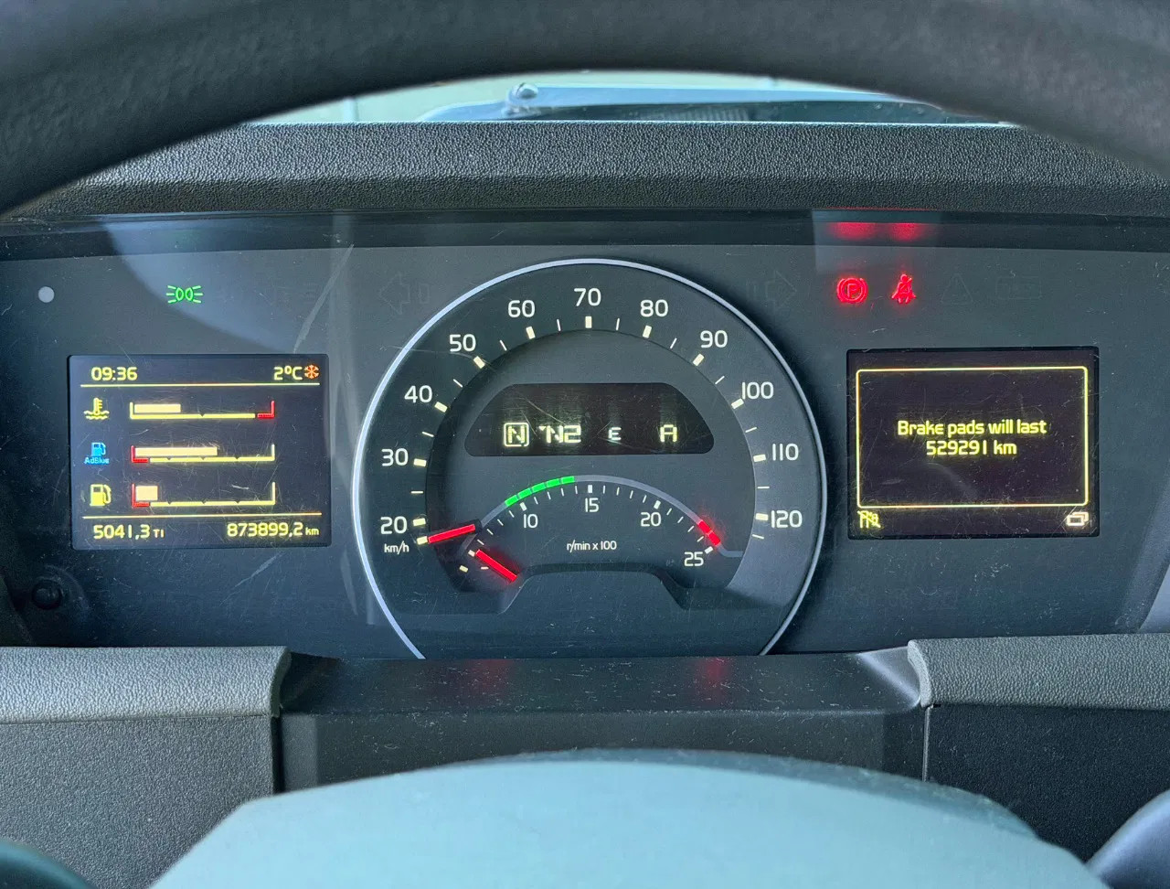 Rear axle: Tyre size: 315/70 R22.5; Double wheels; Max. axle load: 11500 kg; Tyre profile left inner: 90%; Tyre profile left outer: 90%; Tyre profile right outer: 90%; Tyre profile right outer: 90%; Reduction: single reduction