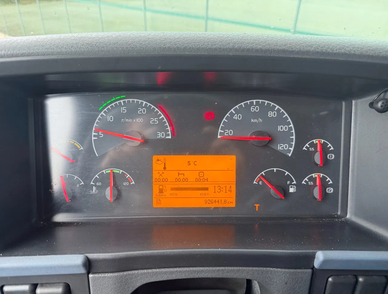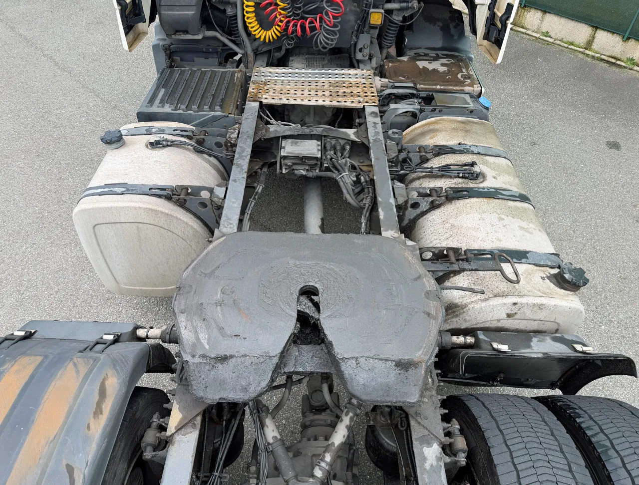 Rear axle: Tyre size: 315/70 R22.5; Double wheels; Max. axle load: 11500 kg; Tyre profile left inner: 80%; Tyre profile left outer: 80%; Tyre profile right outer: 80%; Tyre profile right outer: 80%; Reduction: single reduction; Suspension: air suspension