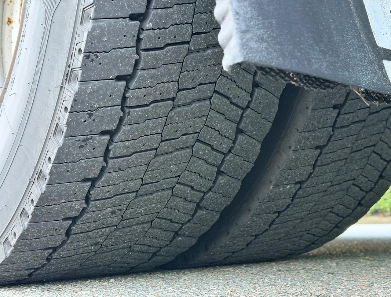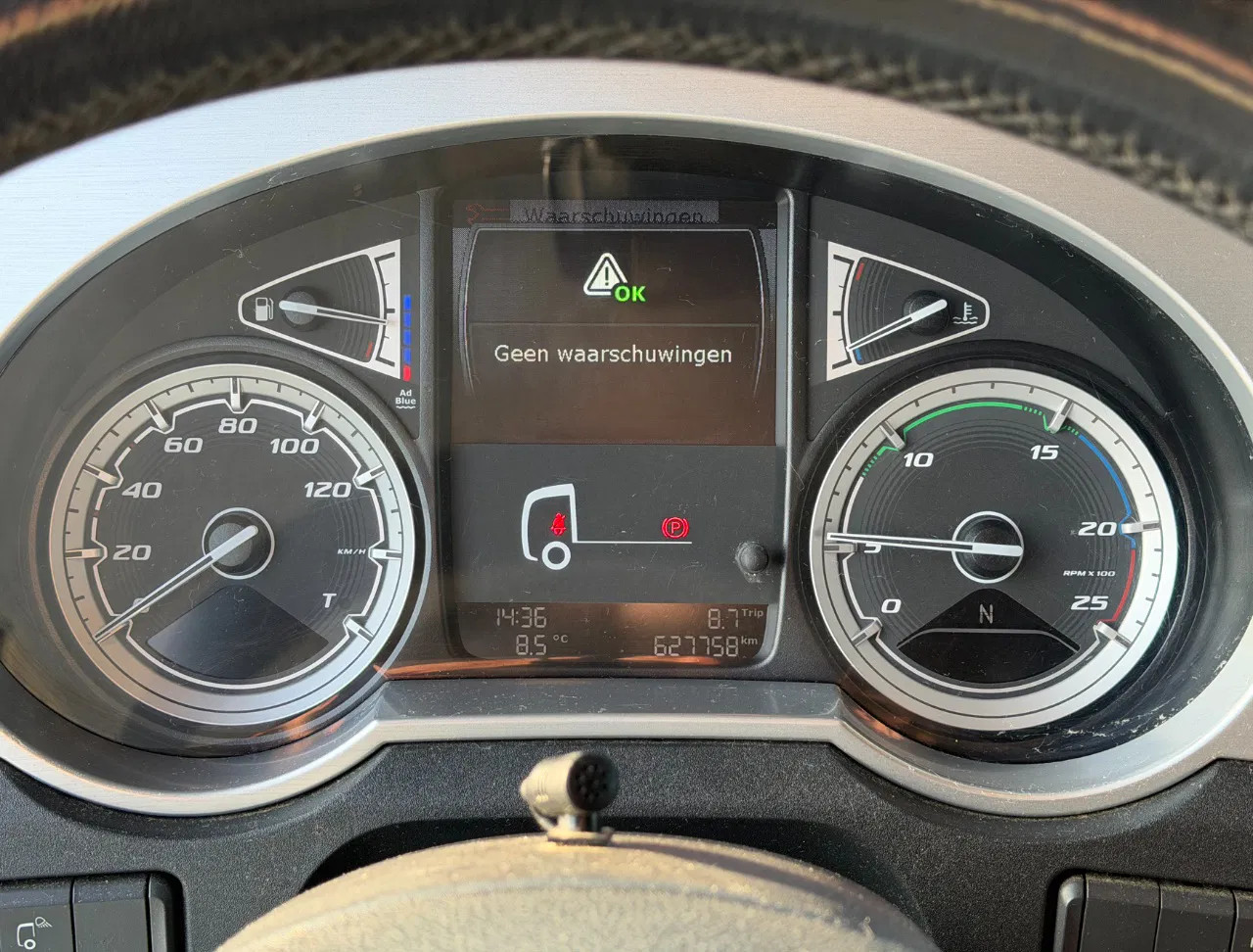 Eje trasero: Tamaño del neumático: 315/70 R22.5; Ruedas dobles; Carga máxima del eje: 11500 kg; Dibujo del neumático izquierda interior: 70%; Dibujo del neumático izquierda exterior: 70%; Dibujo del neumático derecha exterior: 70%; Dibujo del neumático derecha exterior: 70%; Reducción: reducción sencilla