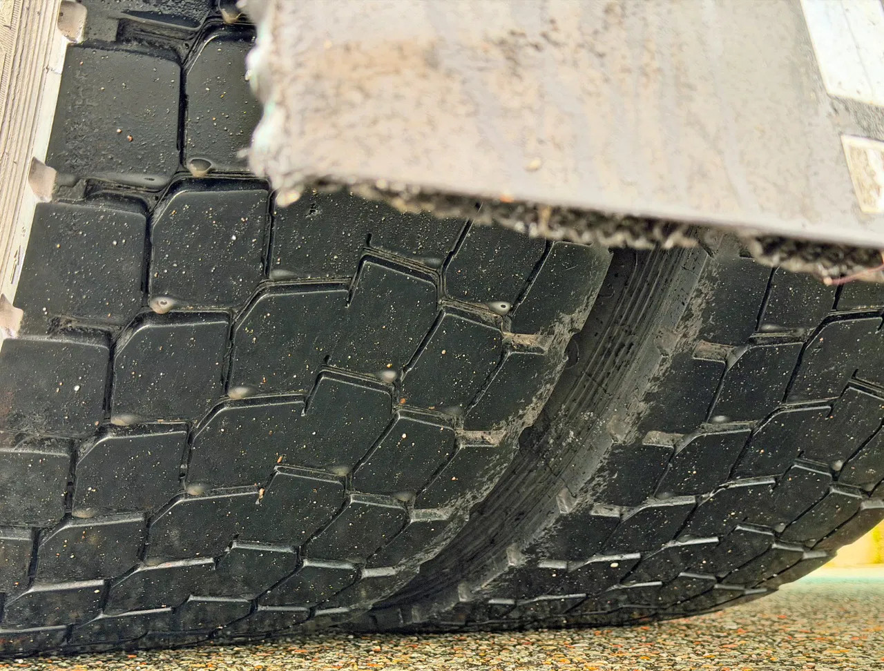 Eje trasero: Ruedas dobles; Carga máxima del eje: 11500 kg; Dibujo del neumático izquierda interior: 30%; Dibujo del neumático izquierda exterior: 30%; Dibujo del neumático derecha exterior: 30%; Dibujo del neumático derecha exterior: 30%