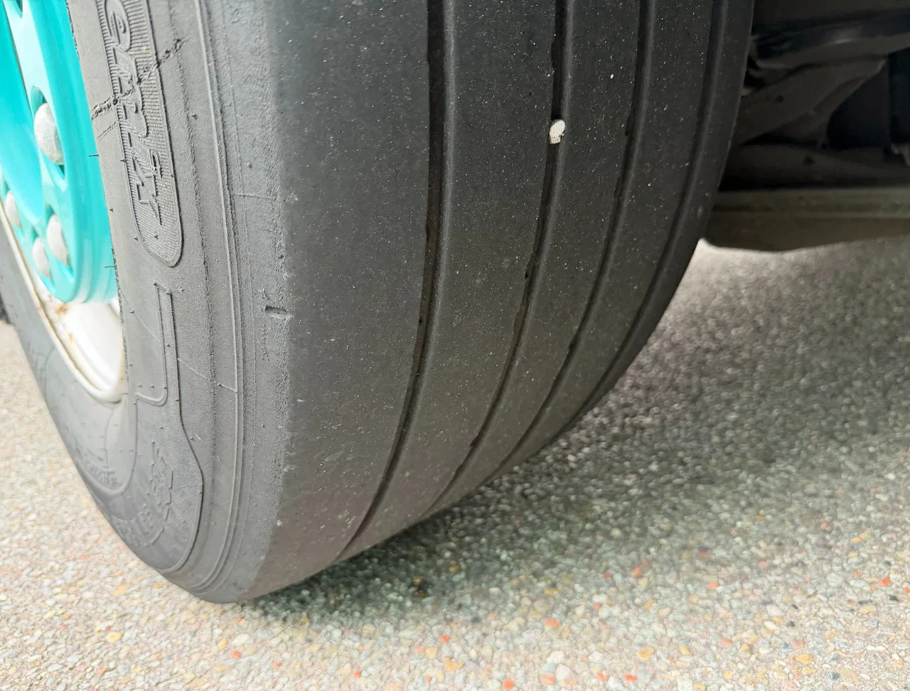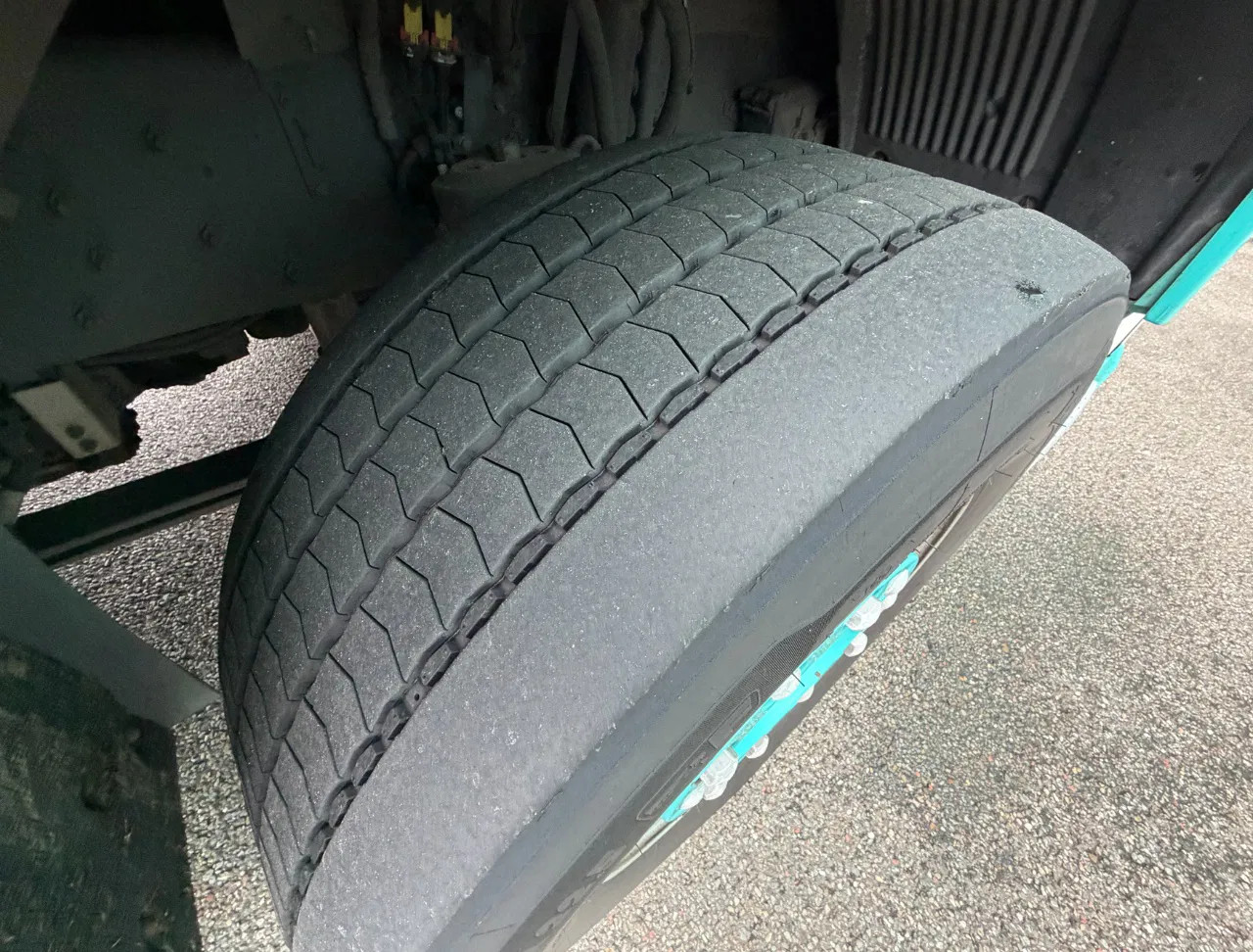 Vooras: Bandenmaat: 385/55 R22.5; Max. aslast: 9000 kg; Bandenprofiel links: 50%; Bandenprofiel rechts: 50%